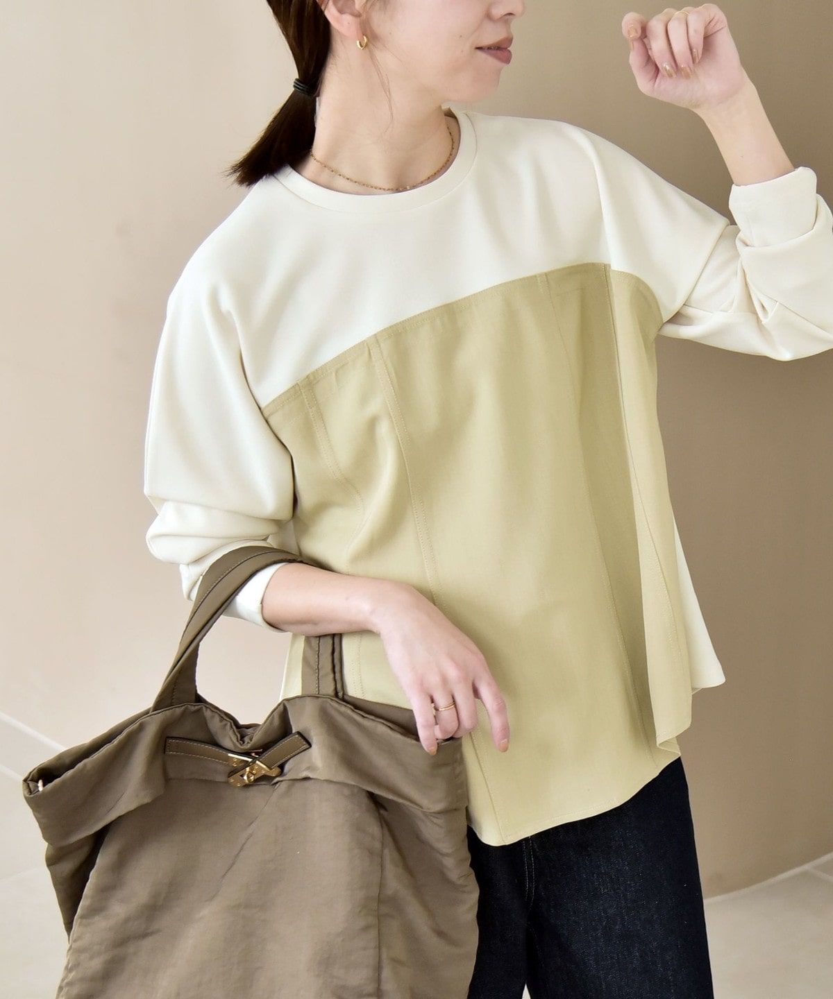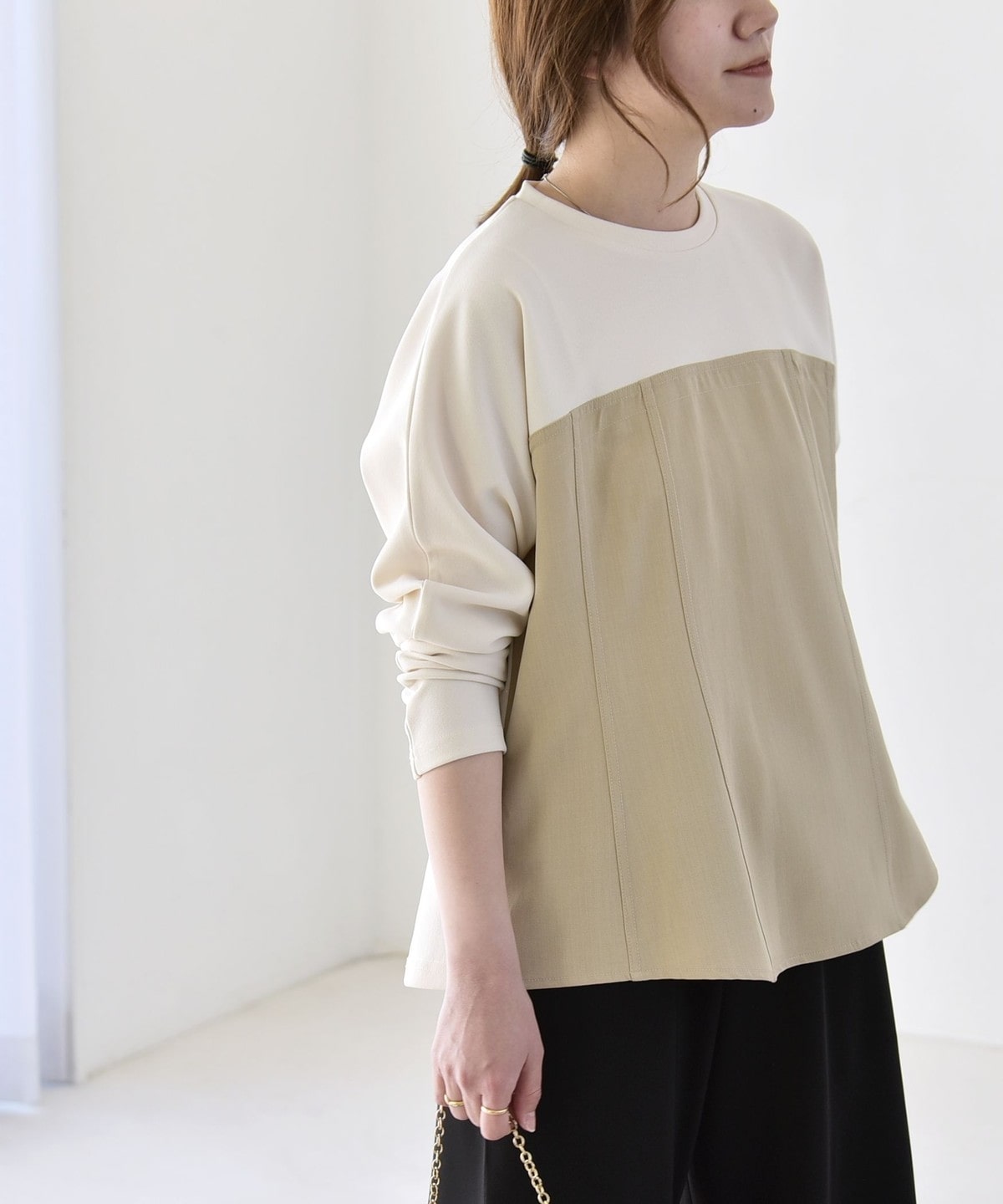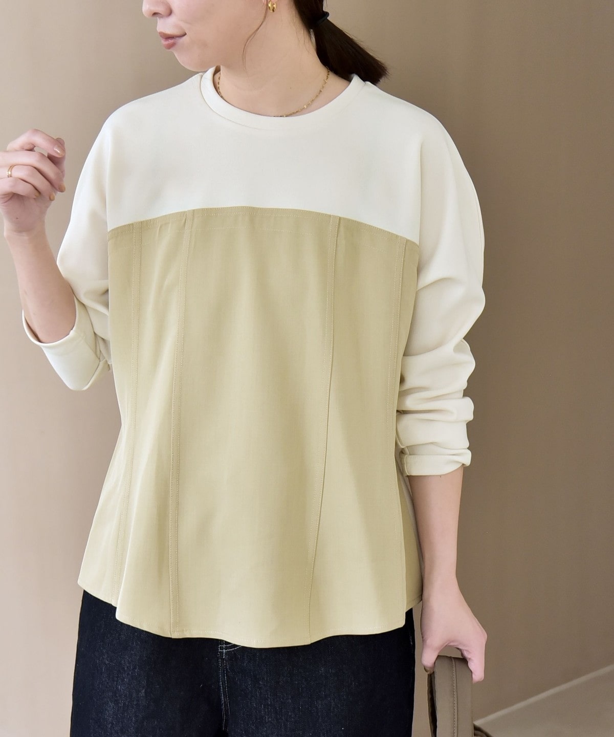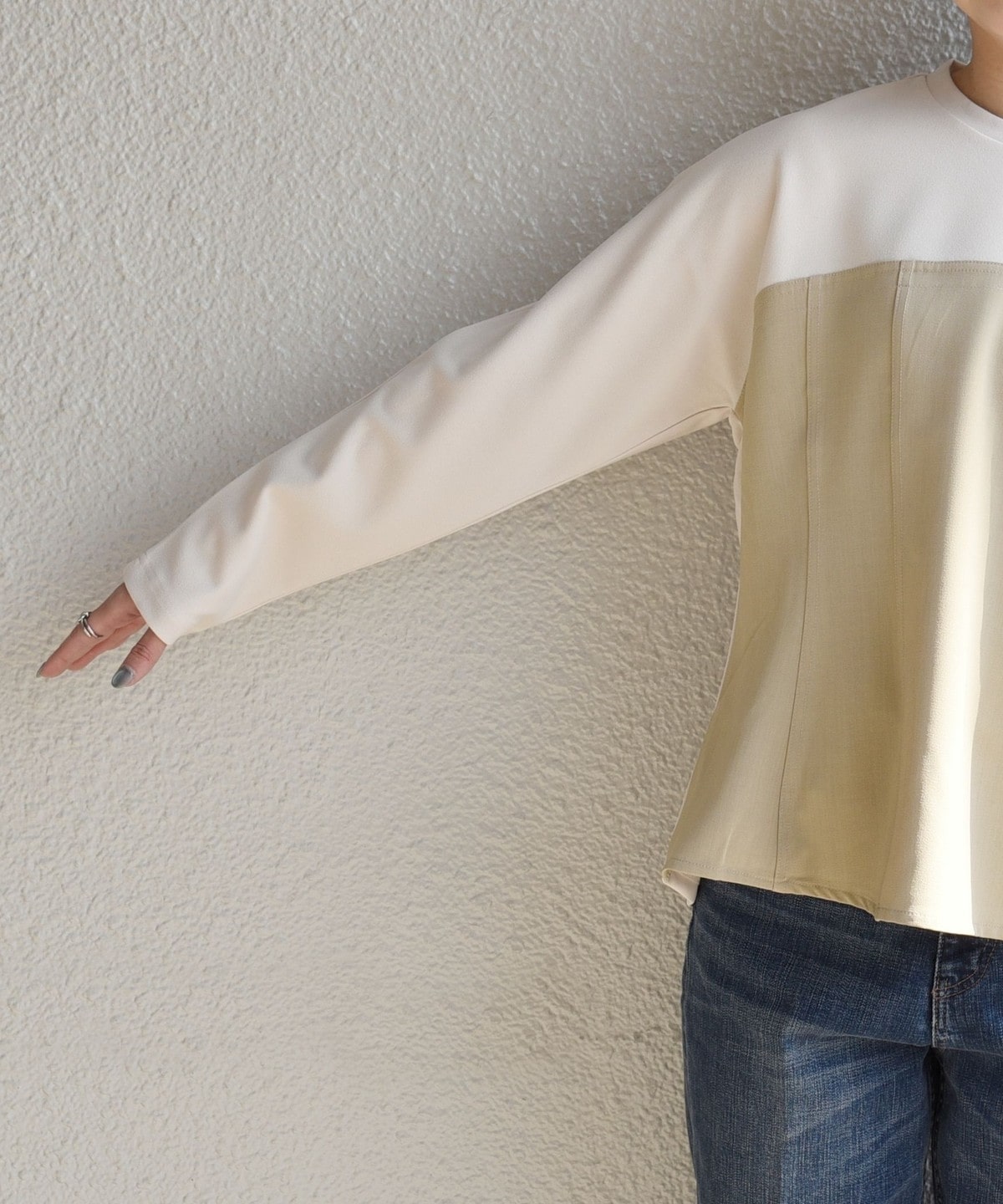 ジャージー素材と布帛のコンビデザインがポイントのプルオーバー。