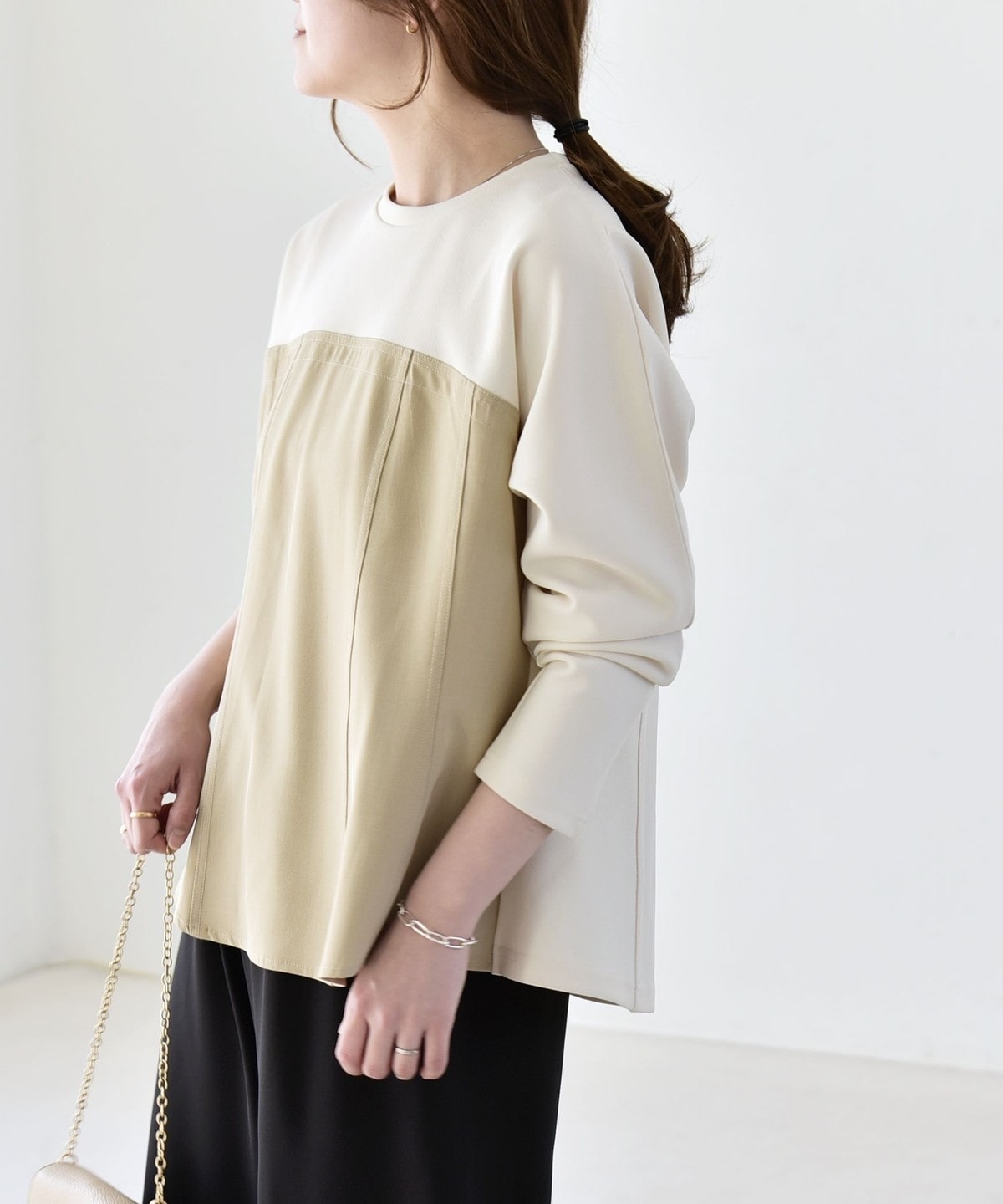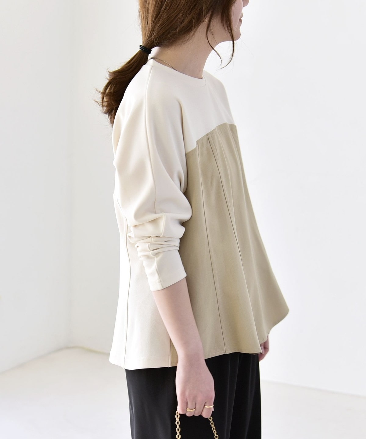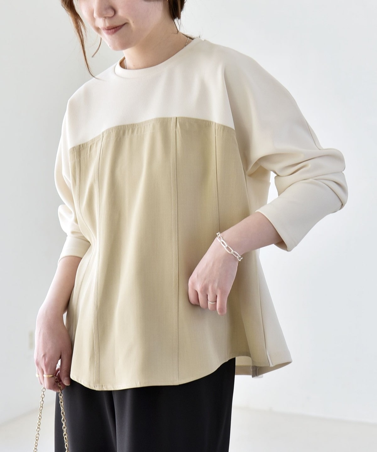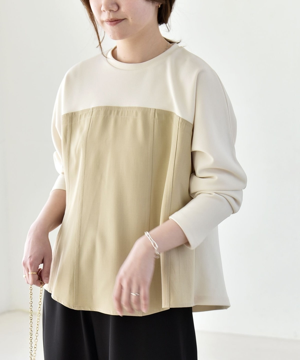 ジャージー素材と布帛のコンビデザインがポイントのプルオーバー。