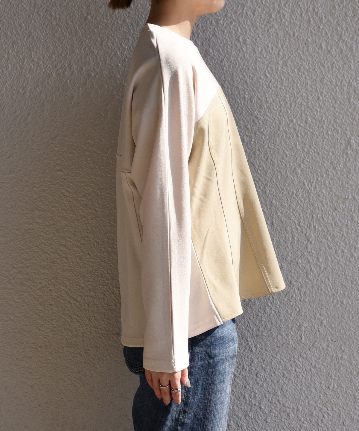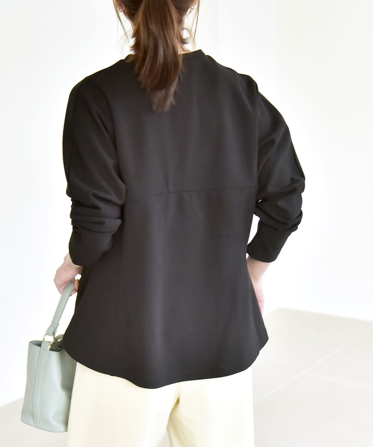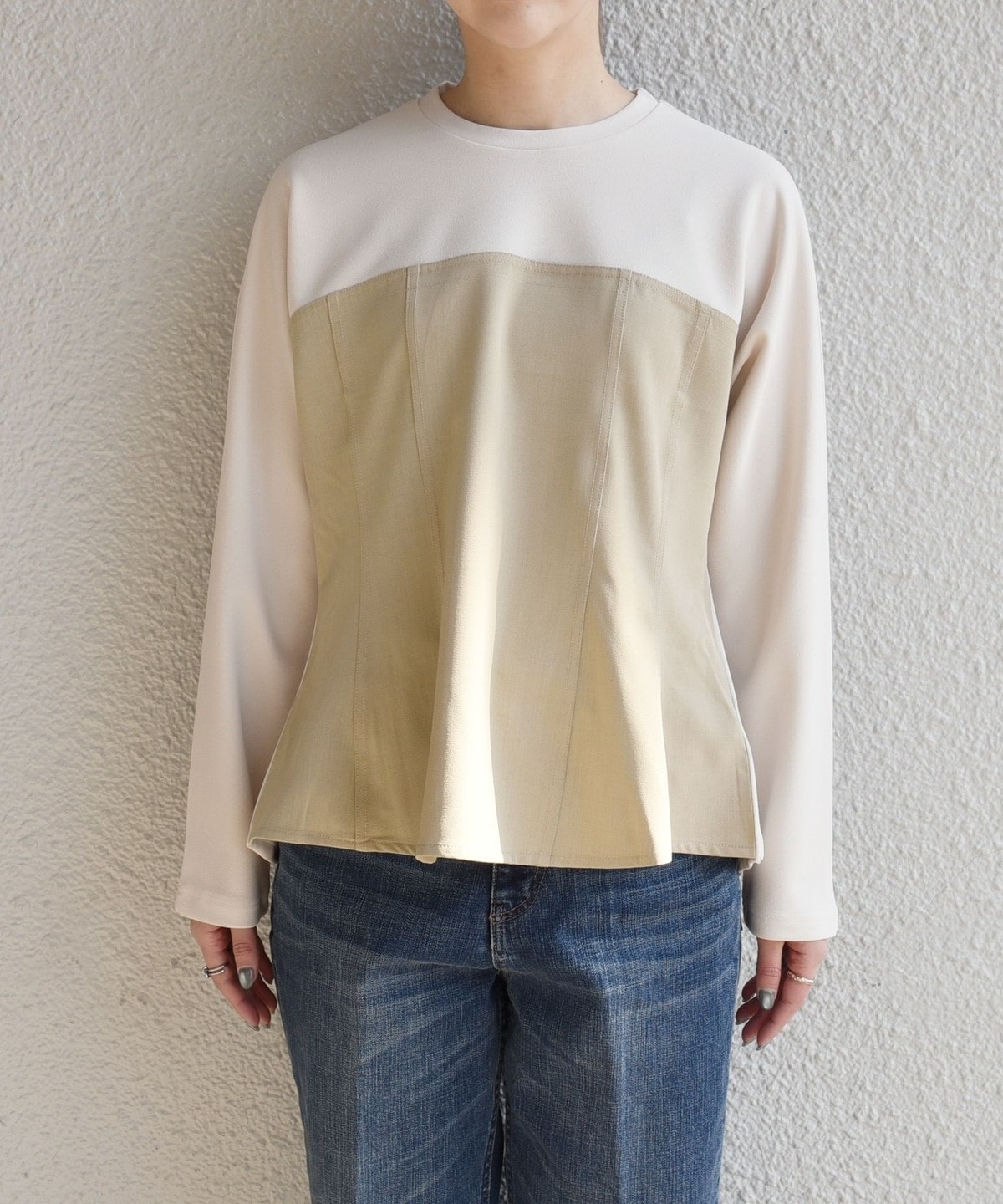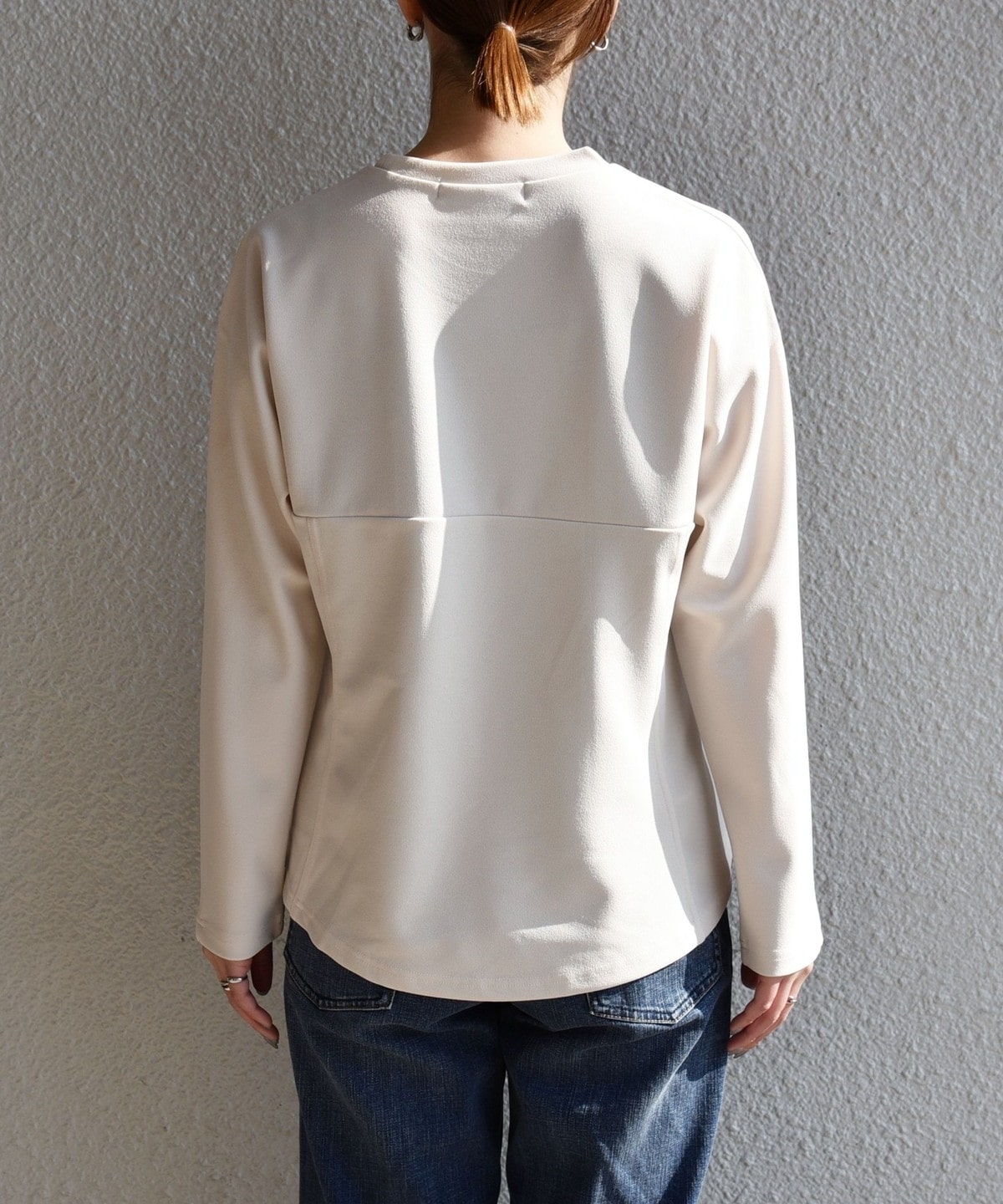 ジャージー素材と布帛のコンビデザインがポイントのプルオーバー。