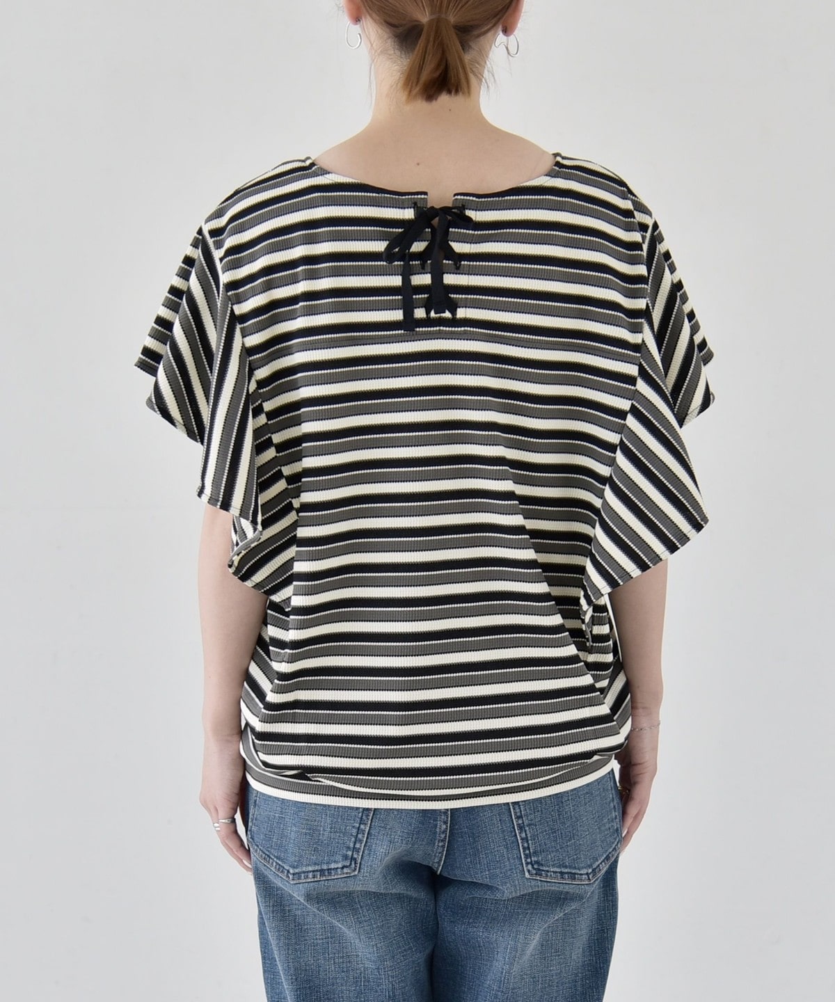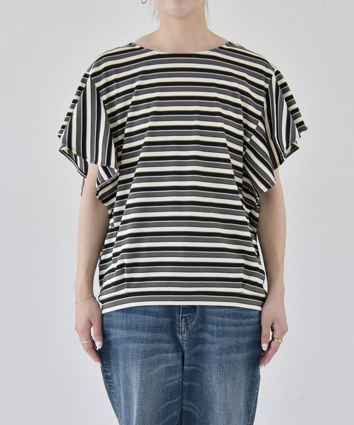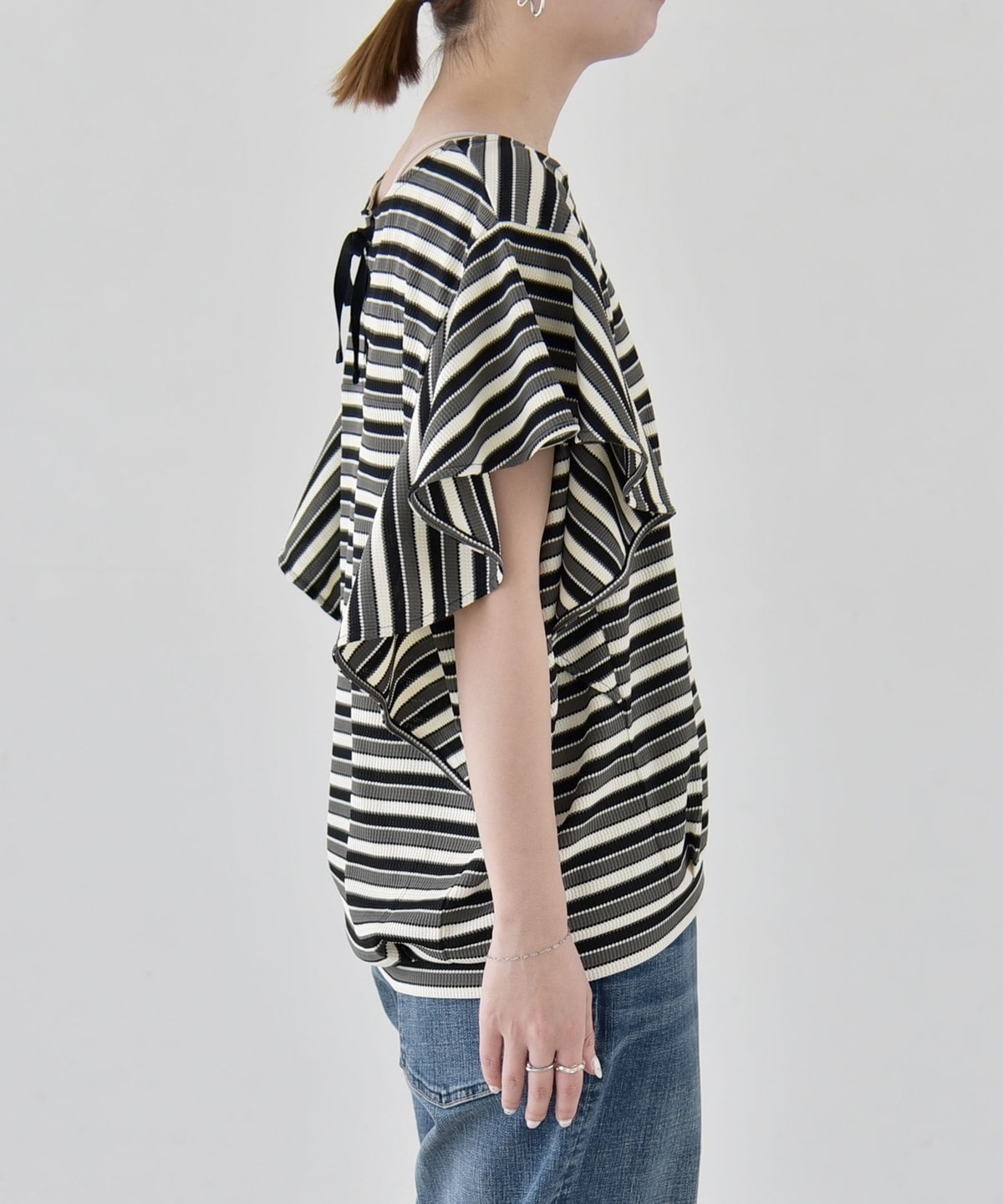 quaranciel:〈洗濯機可能〉マルチボーダー ラッフル コクーン プルオーバー
