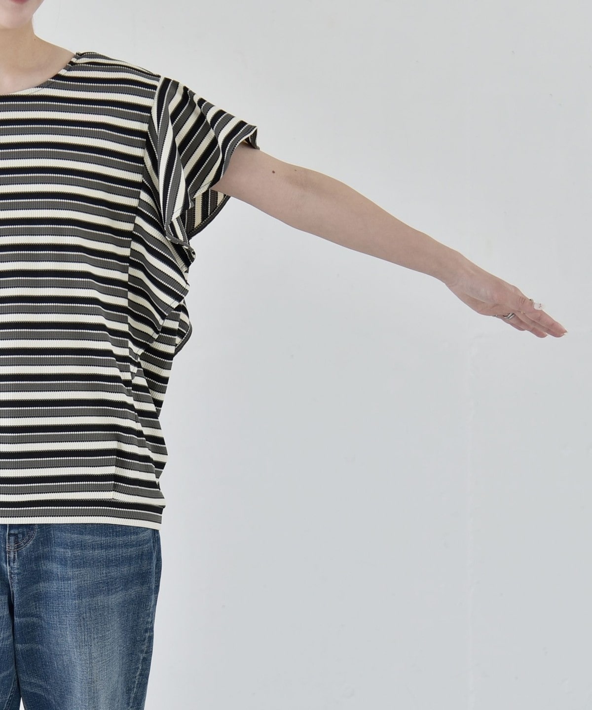 トレンドのマルチボーダーが目を惹く、大人フェミニンなカットソー