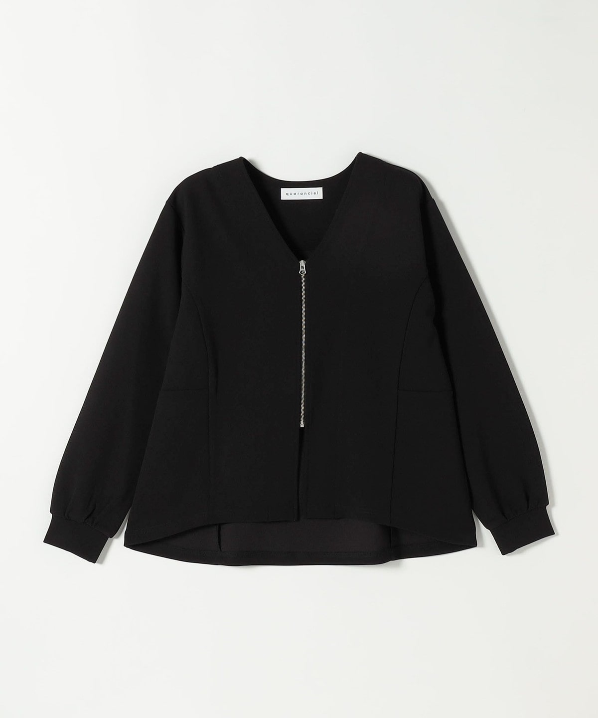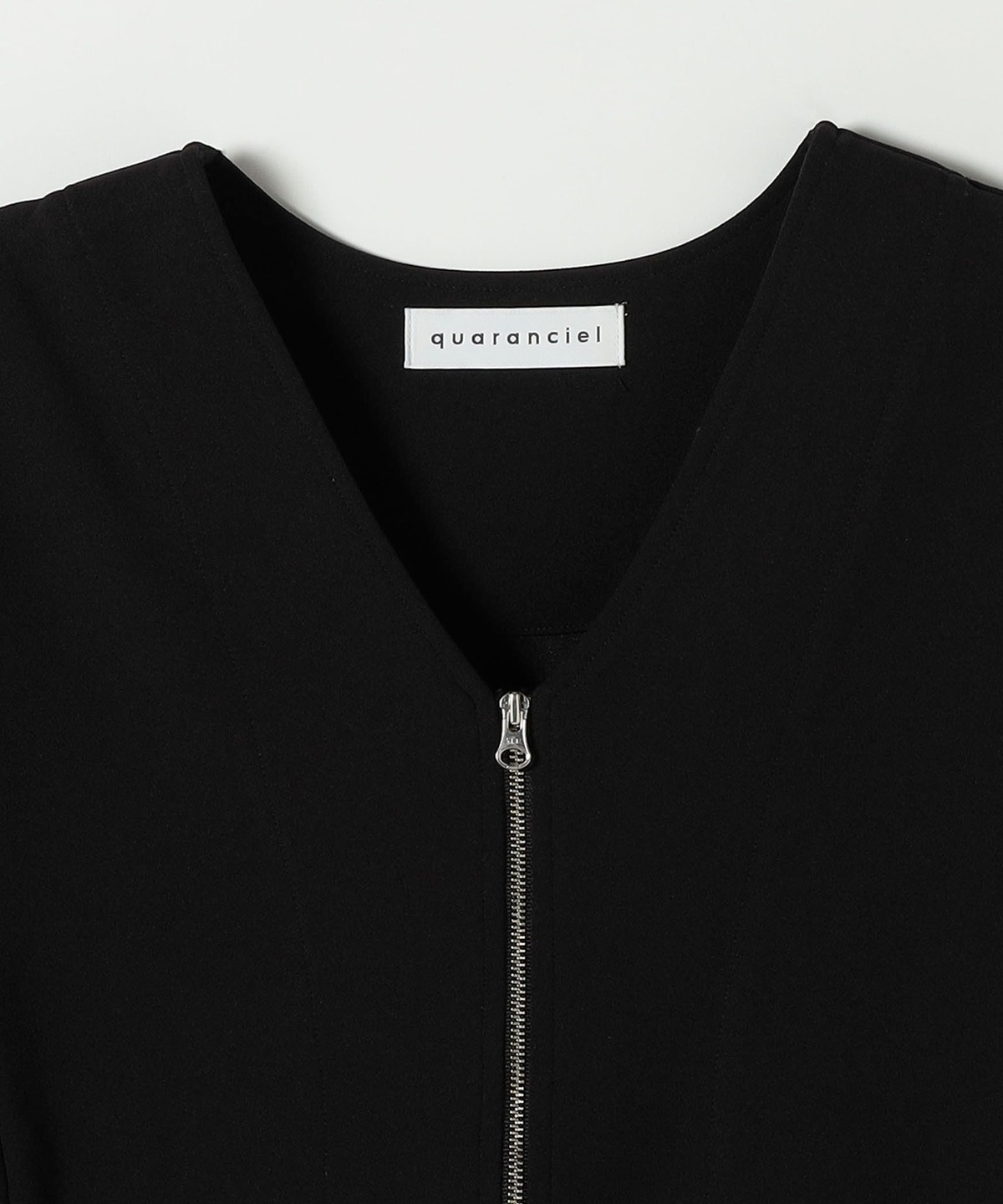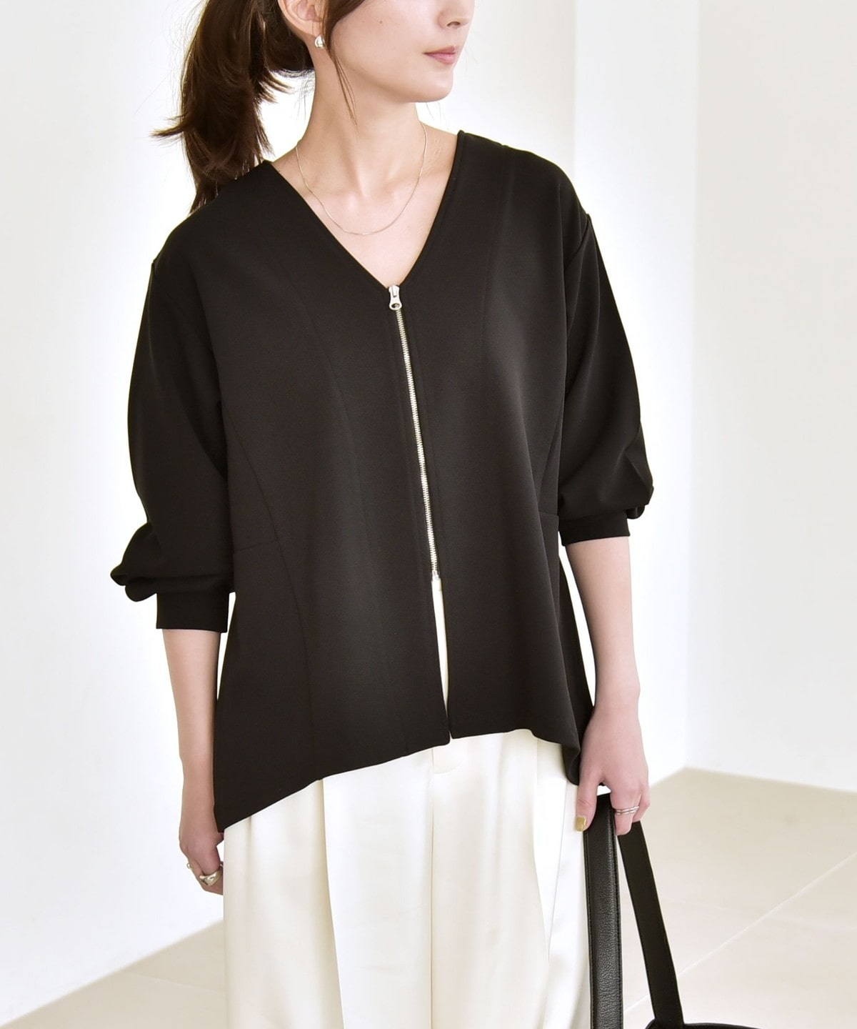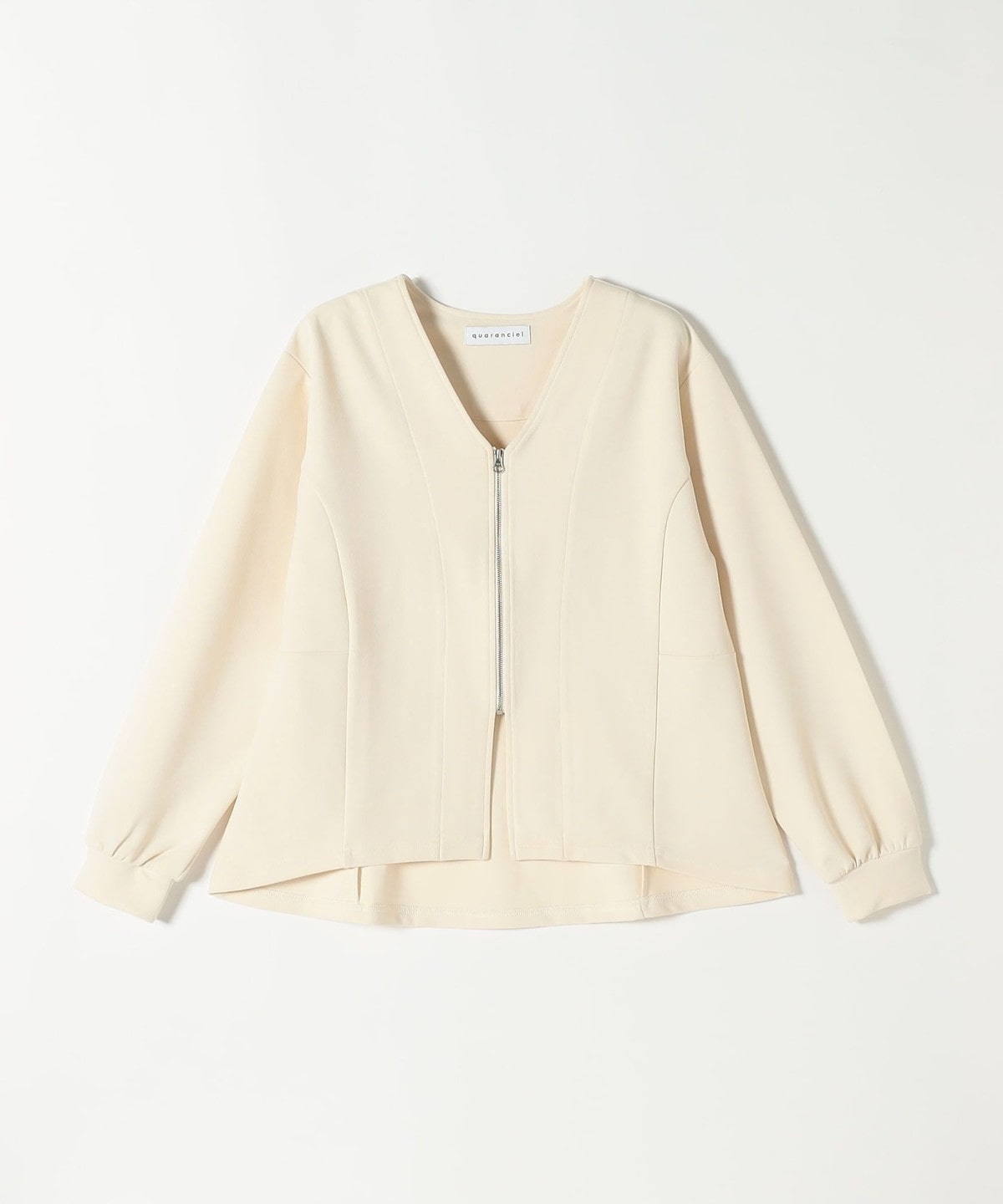 quaranciel:〈洗濯機可能〉カットジョーゼット Vネック ジップ カーディガン
