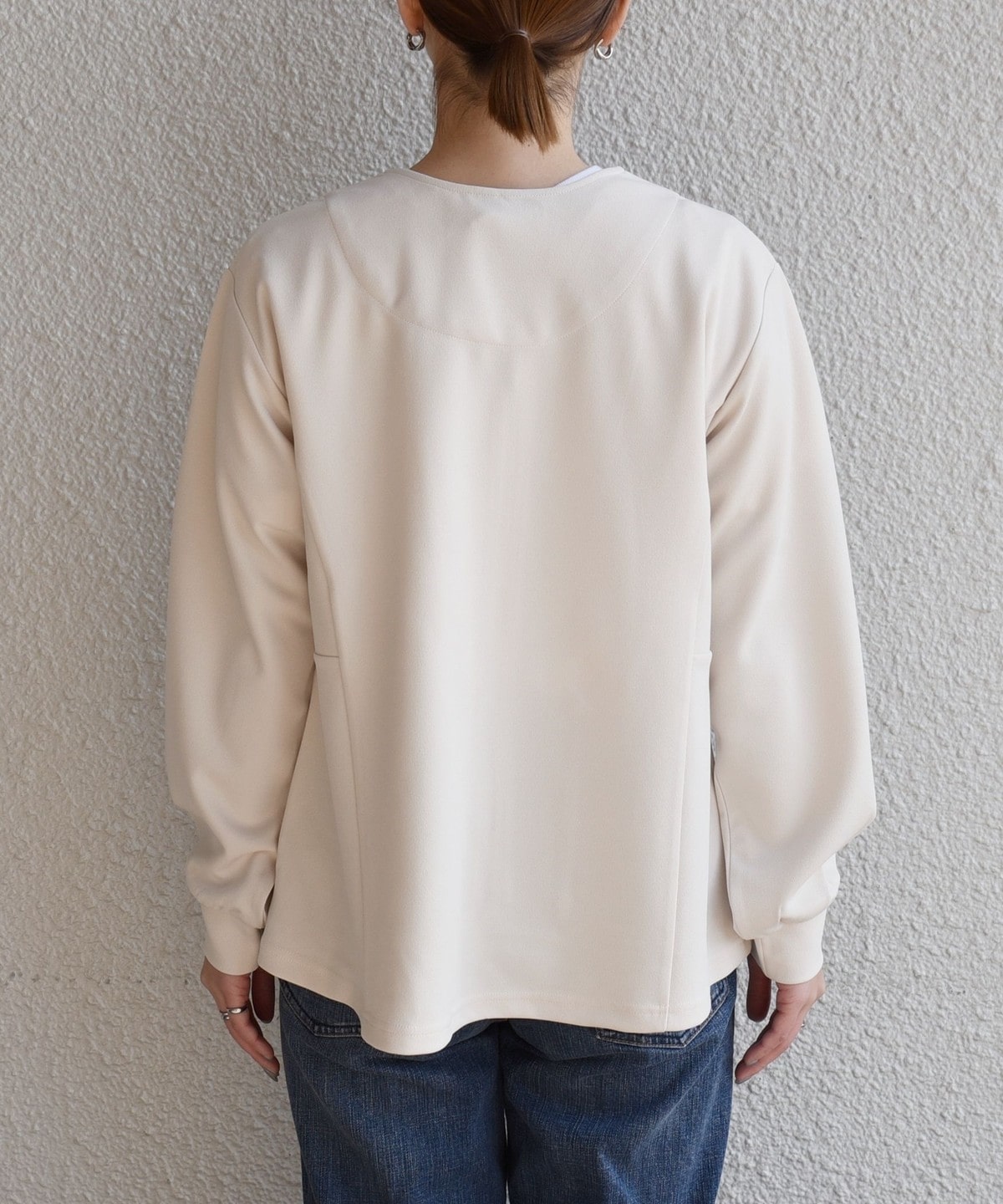ジップ下はスリットのようになっており、閉じてプルオーバーのように着ても重たくならず抜け感が出てくれます。