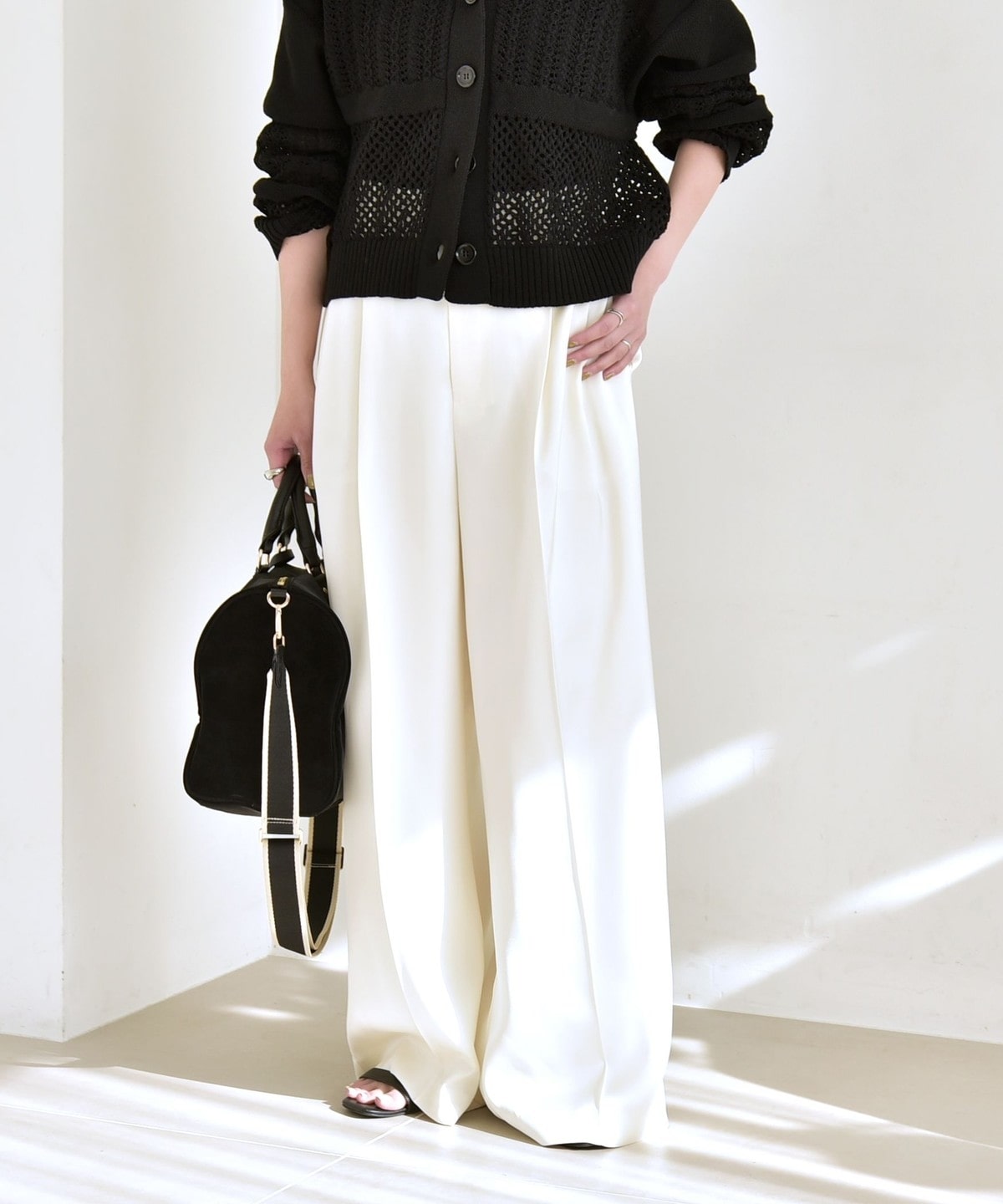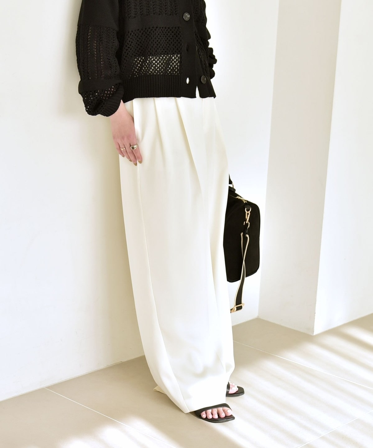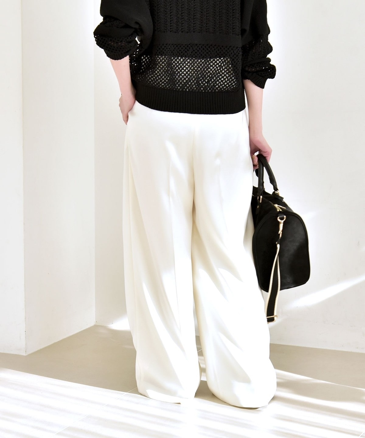 ウエスト部分に深めのタックを入れ腰周りにゆとりを持たせながら、すとんと落ちるシルエットを演出。
