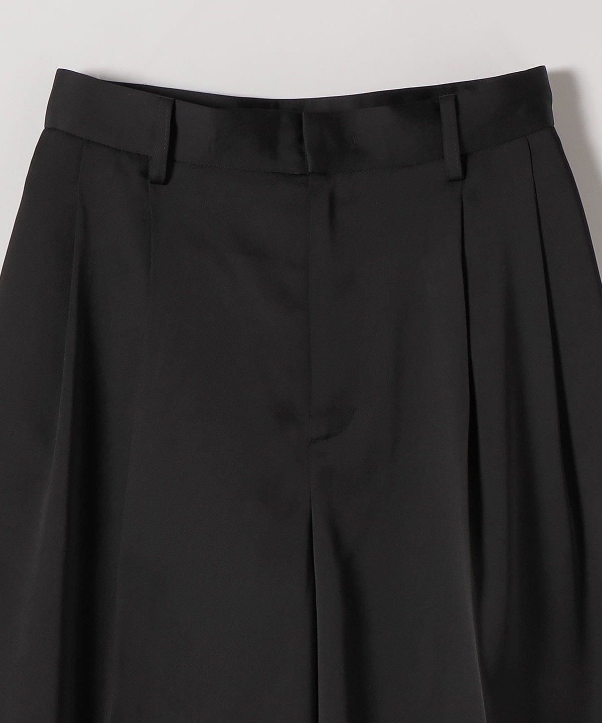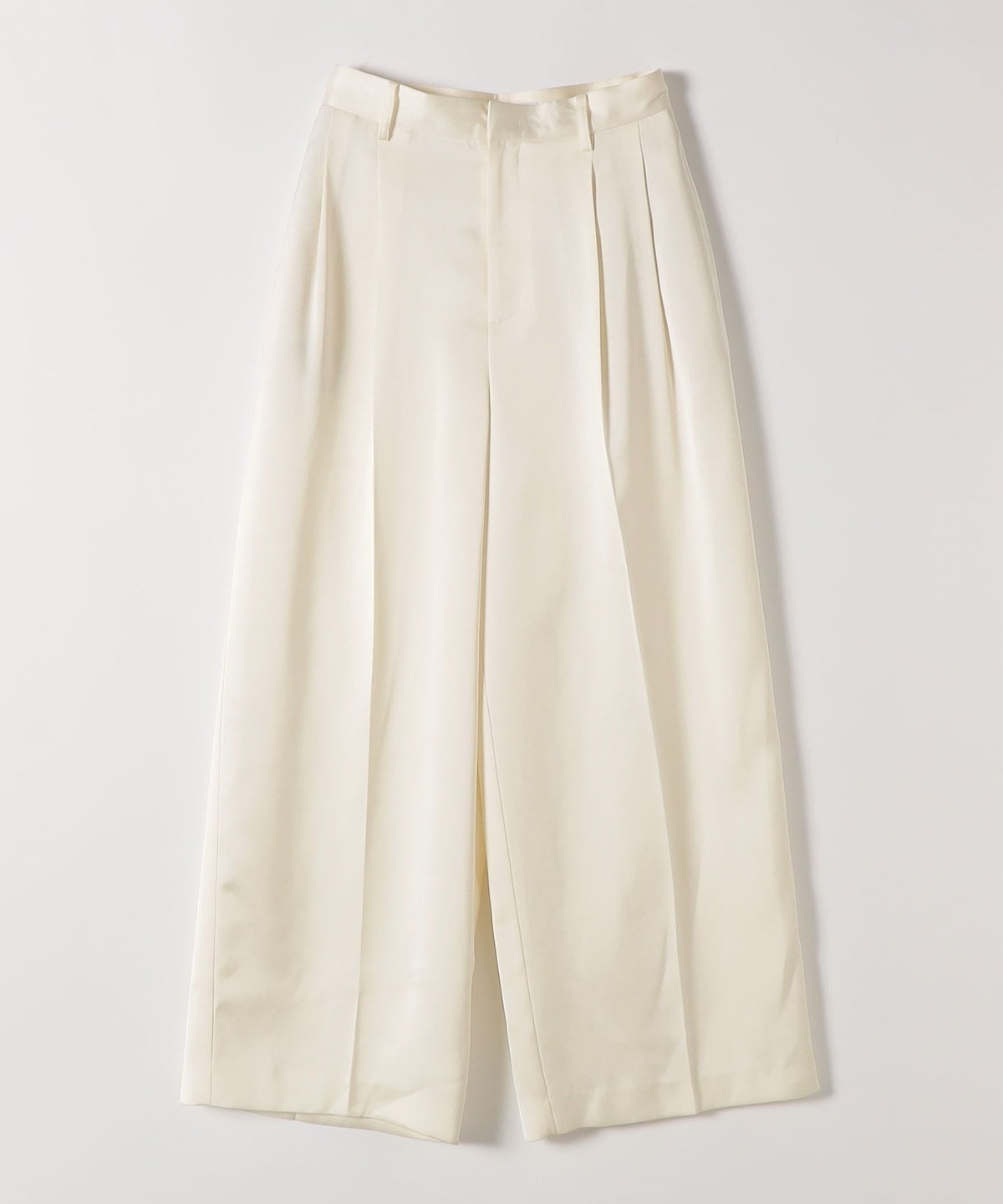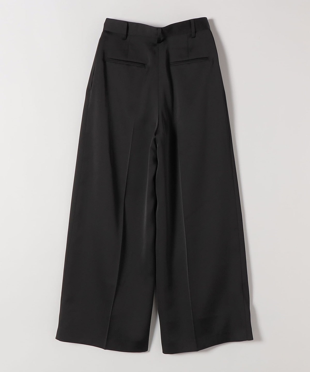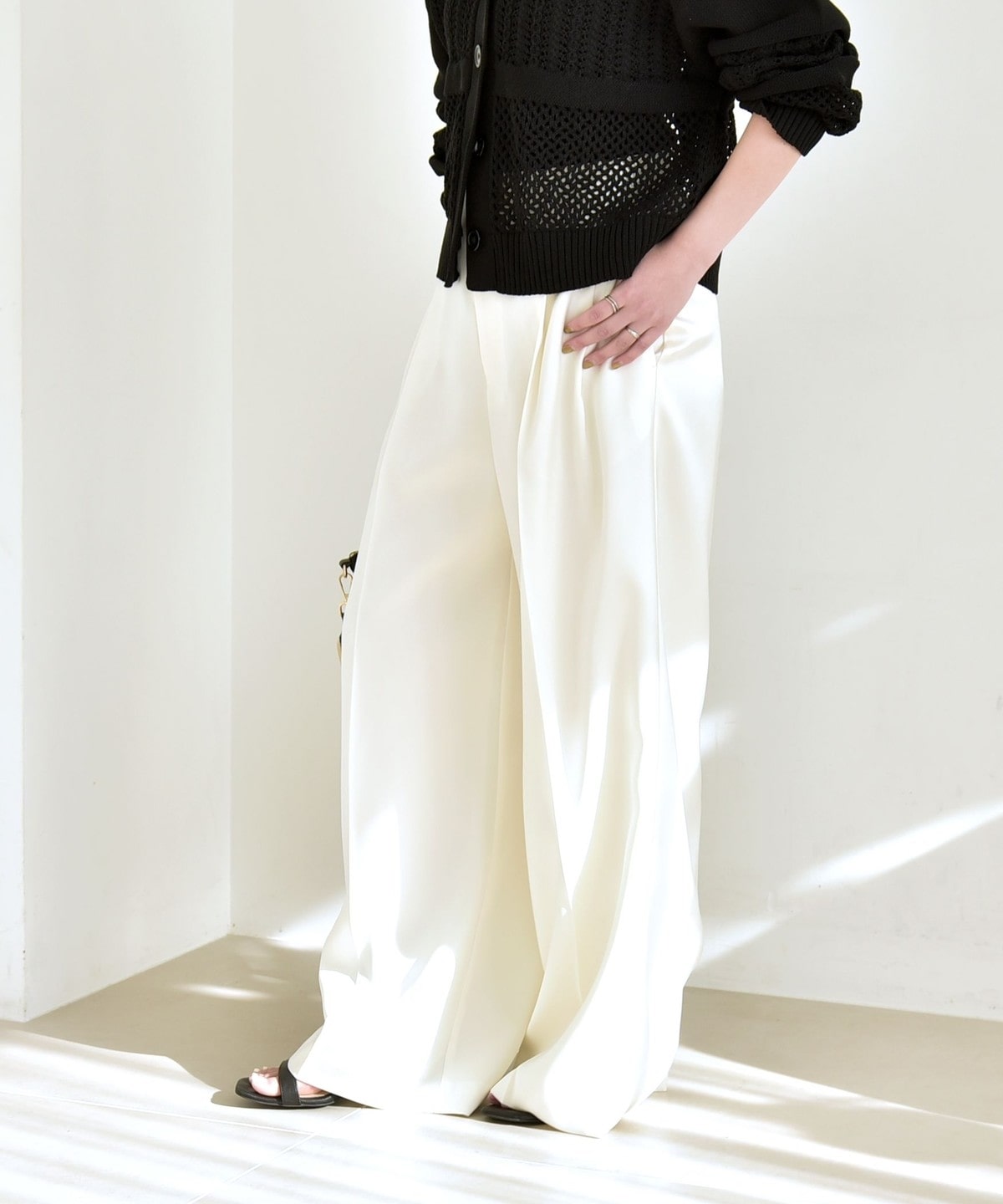 落ち感のあるサテン素材と、ワイドストレートシルエットが綺麗なハイウエストパンツ。