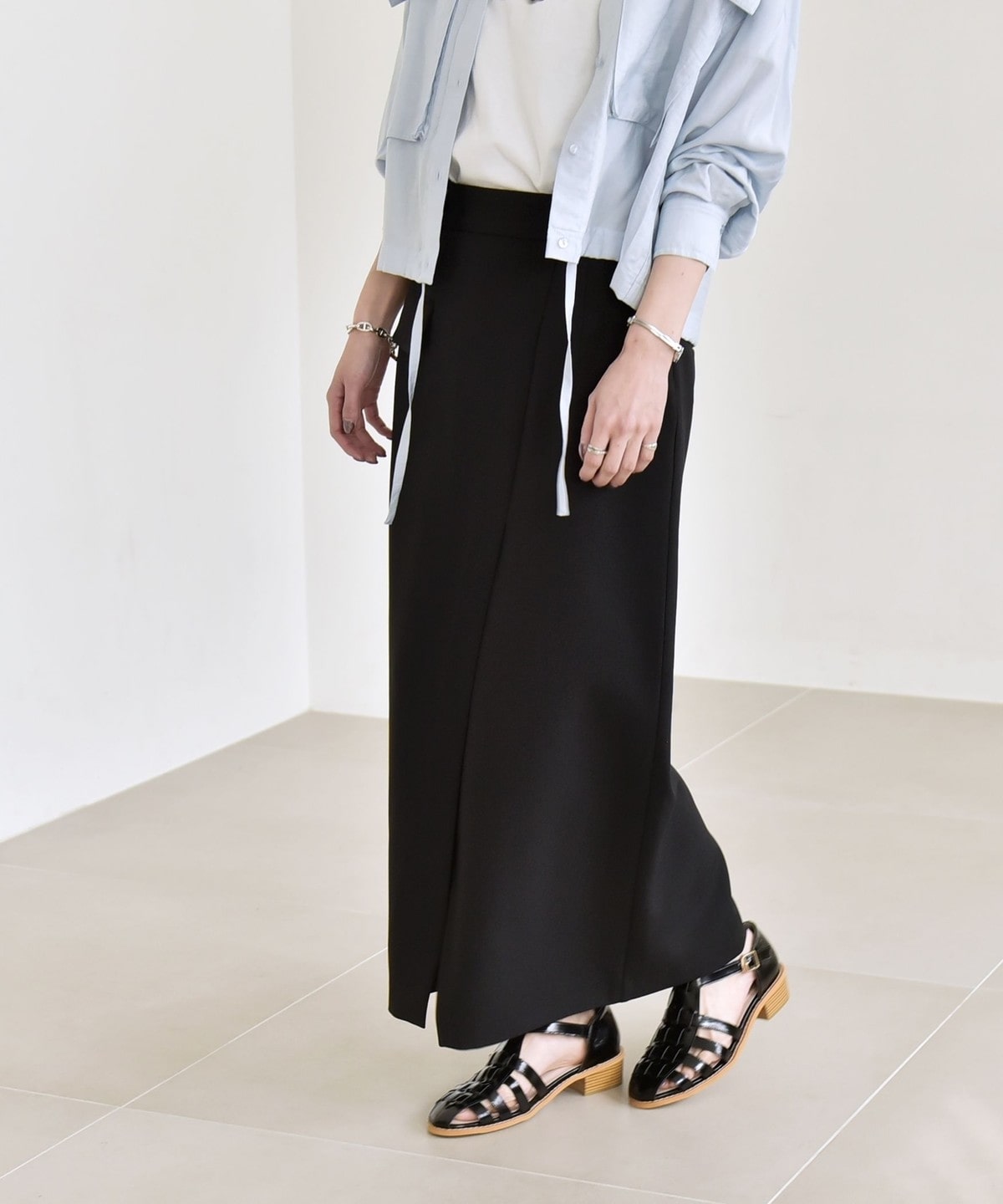 フロントには巻きスカートのような切り替えを施し、裾部分はスリットで少し開いて抜け感を演出。