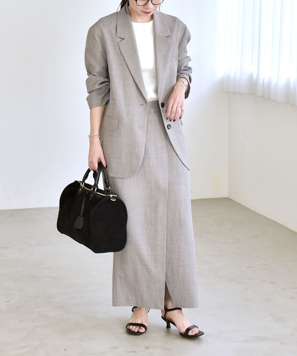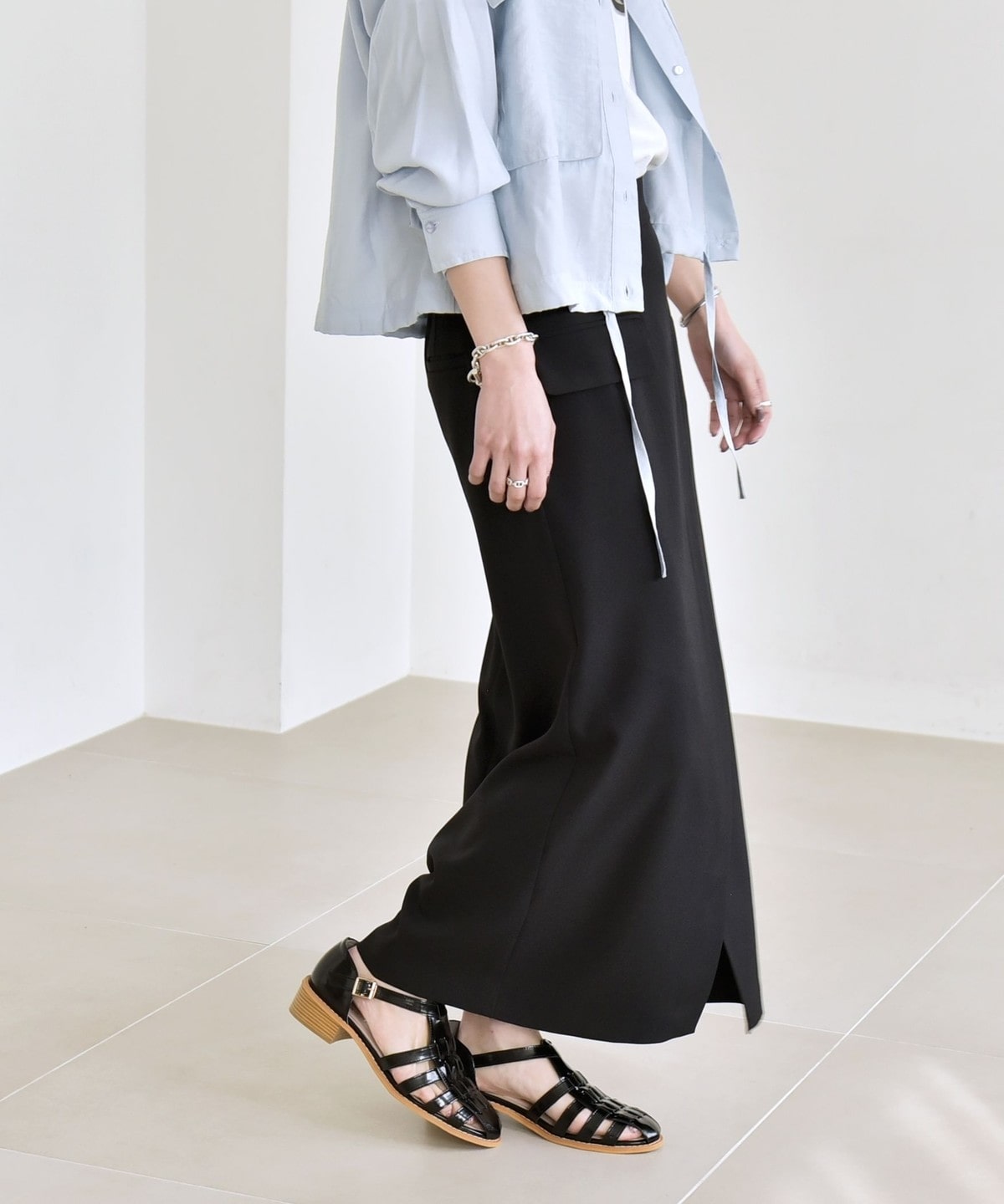 タイトスカートですが、マニッシュなディテールもあるため、スニーカーやTシャツ、スウェット等とも好相性◎