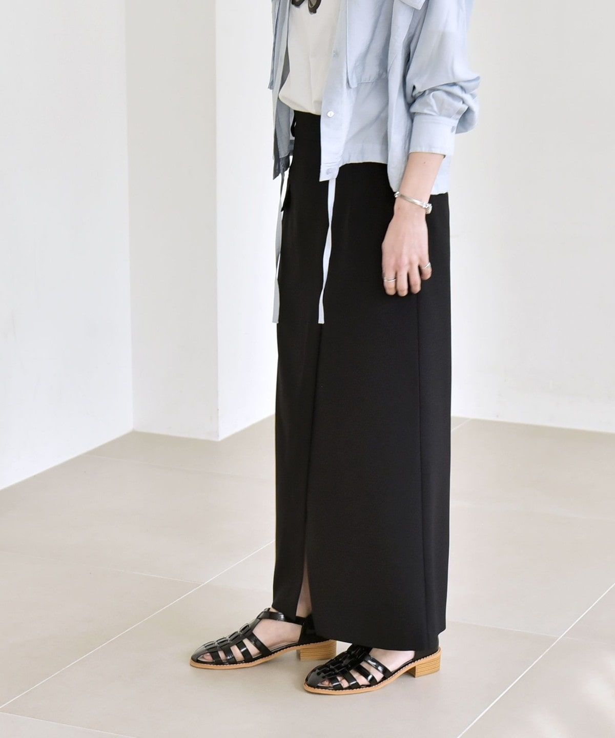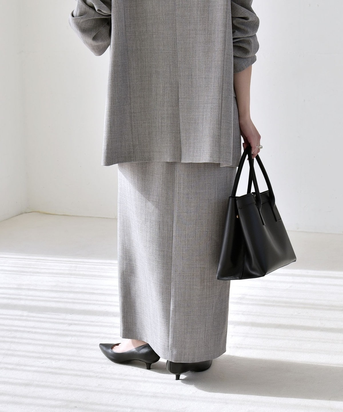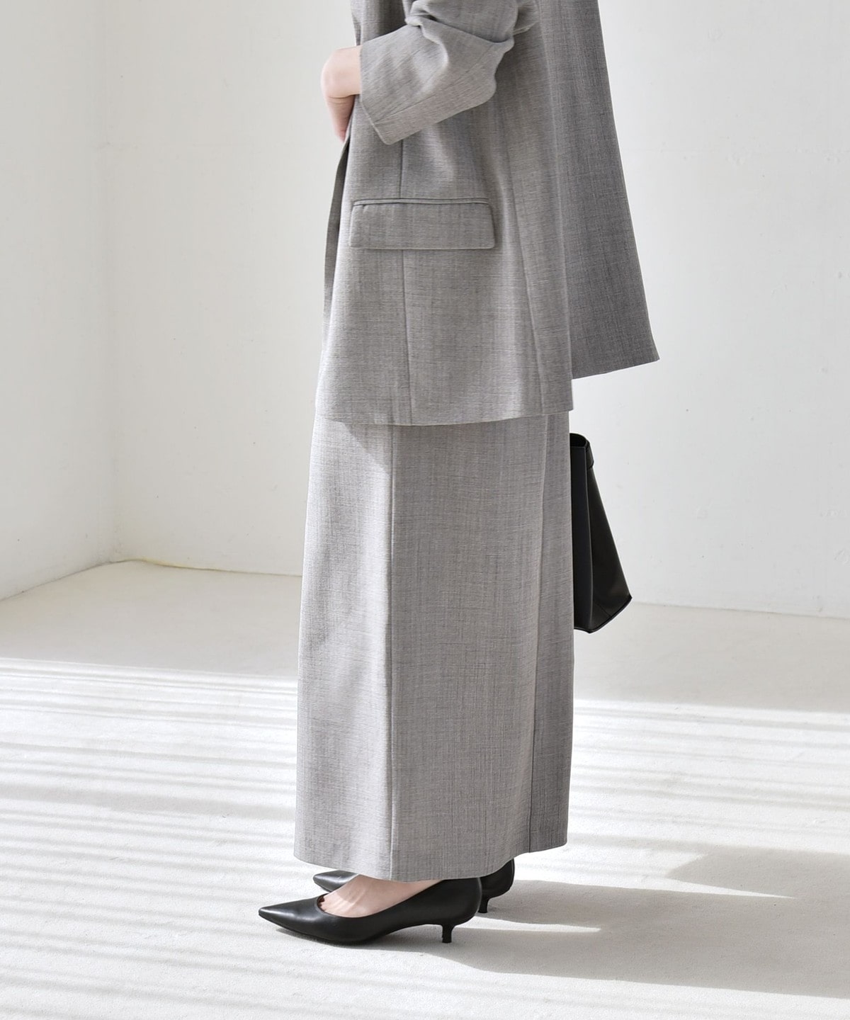 quaranciel:〈手洗い可能〉ウーステッド Iライン スリット スカート(セットアップ対応)