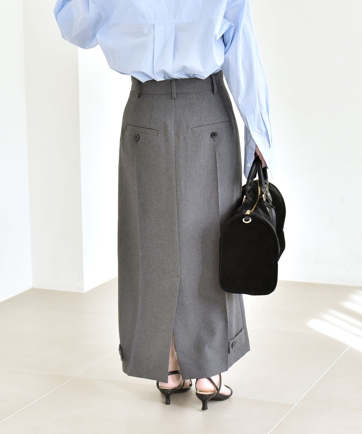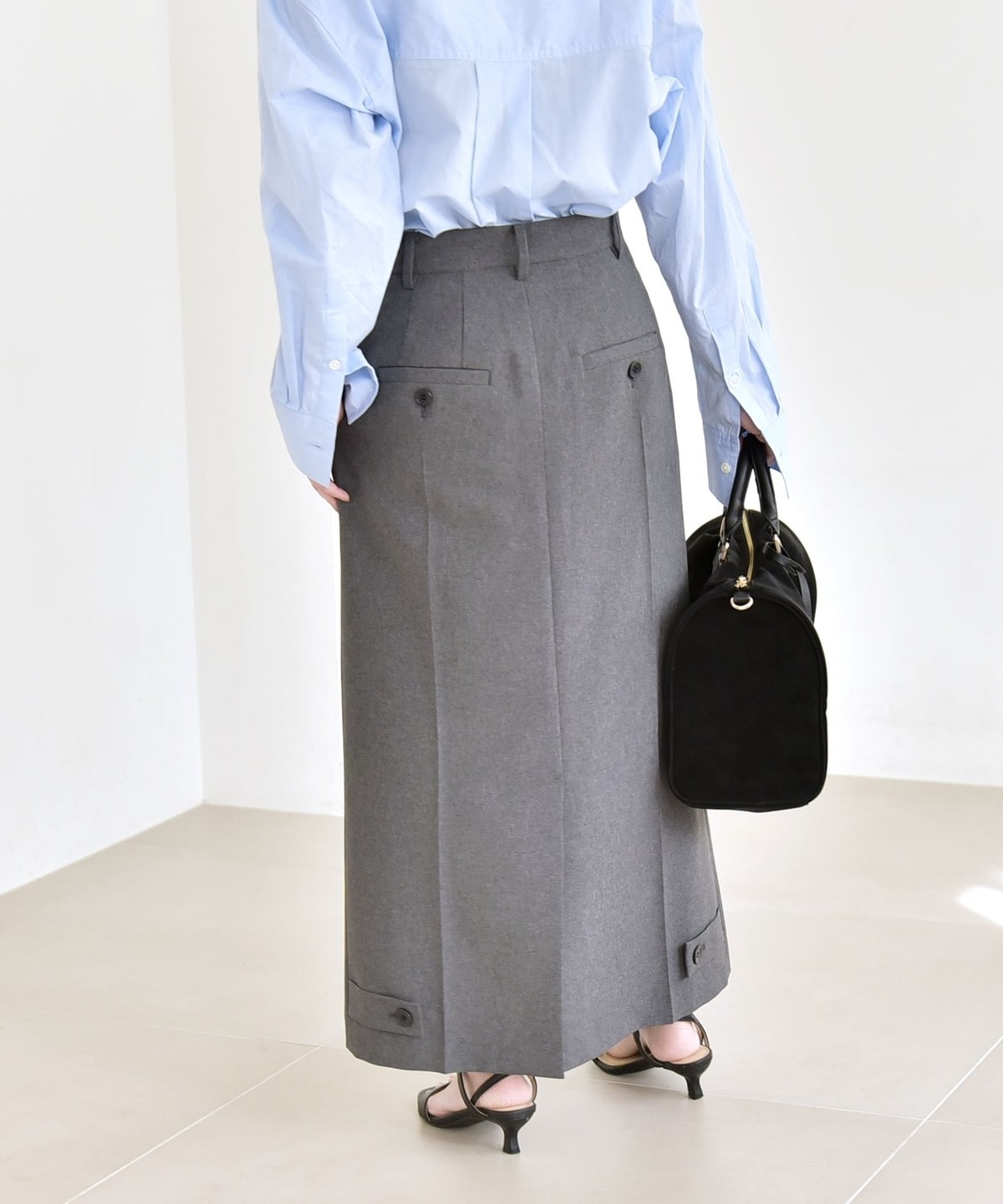 パンツライクなデザインで甘くなりすぎず、カジュアルなアイテムとも好相性です。