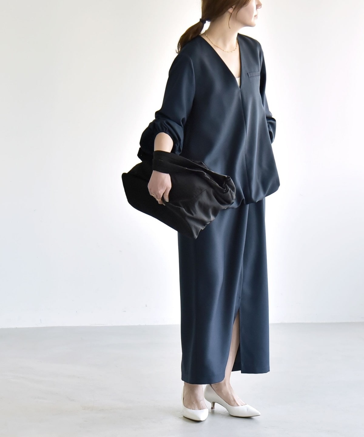 身体のラインを拾いにくく、どんなスタイリングにもマッチする着回し力の高い一着です。