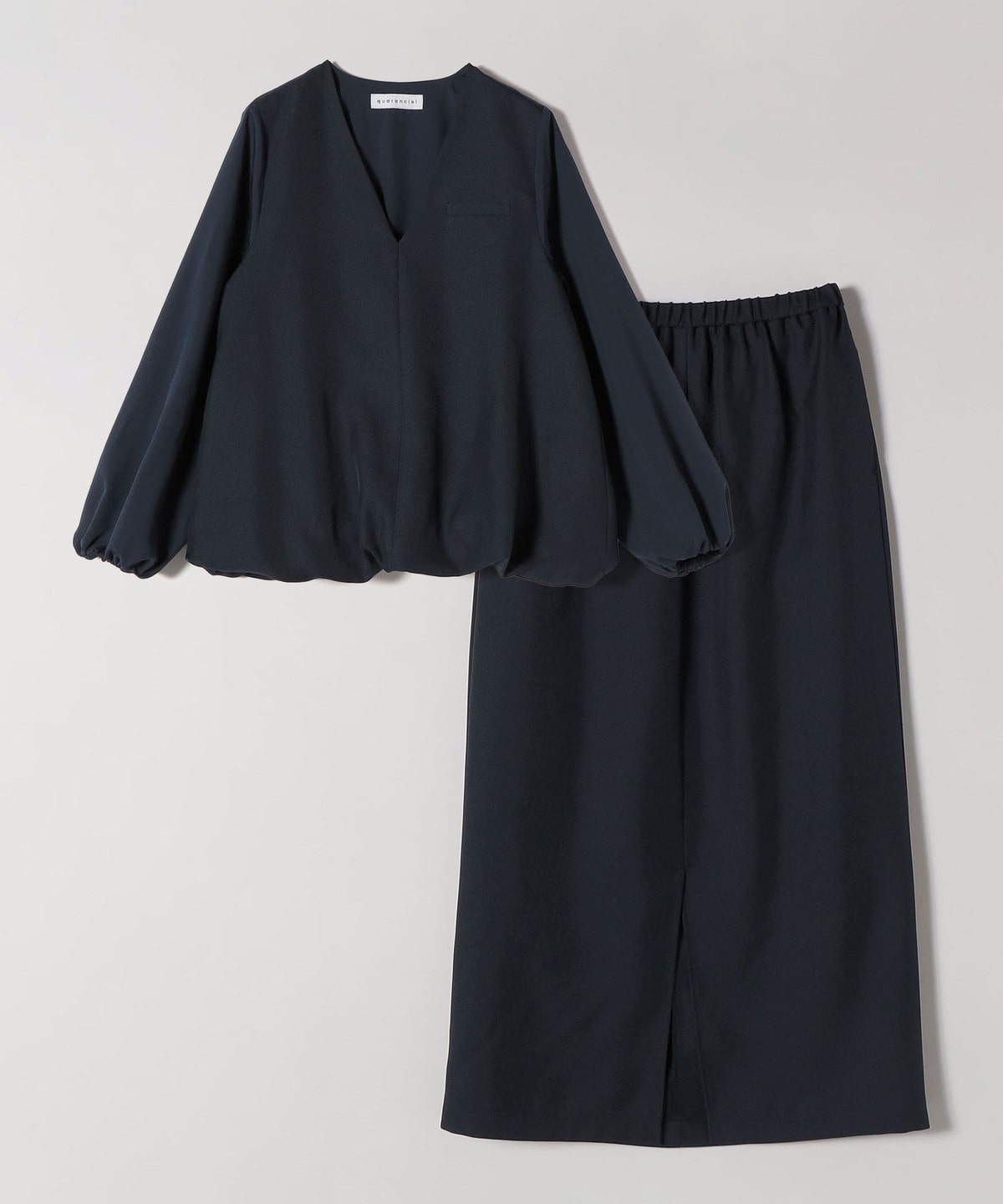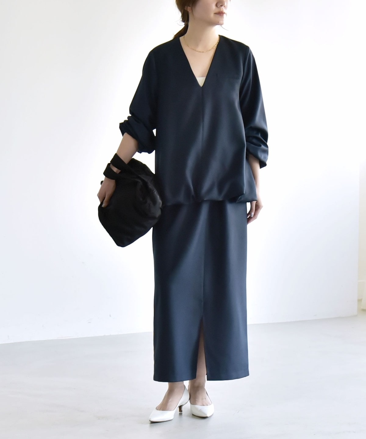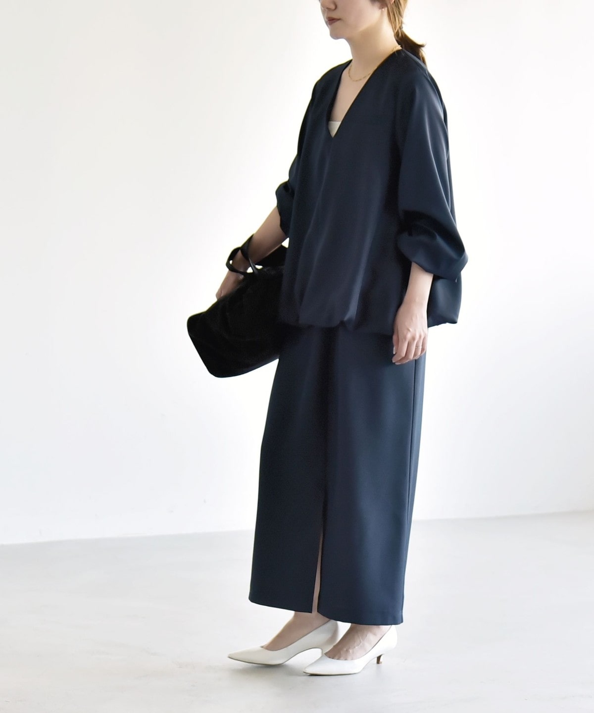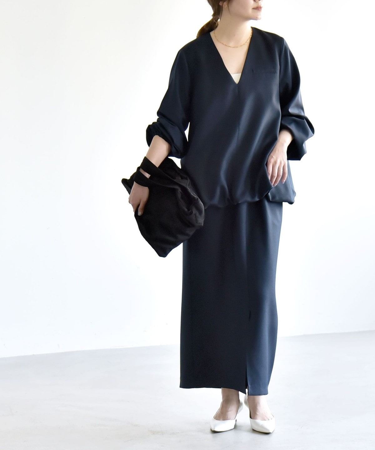 《予約》quaranciel:〈洗濯機可能〉Vネック ブラウス & Iライン スカート セットアップ