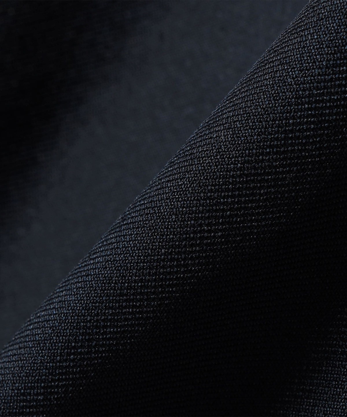 上下セットで着ると、モードな雰囲気になり、通勤や行事など幅広いシーンにマッチします。
