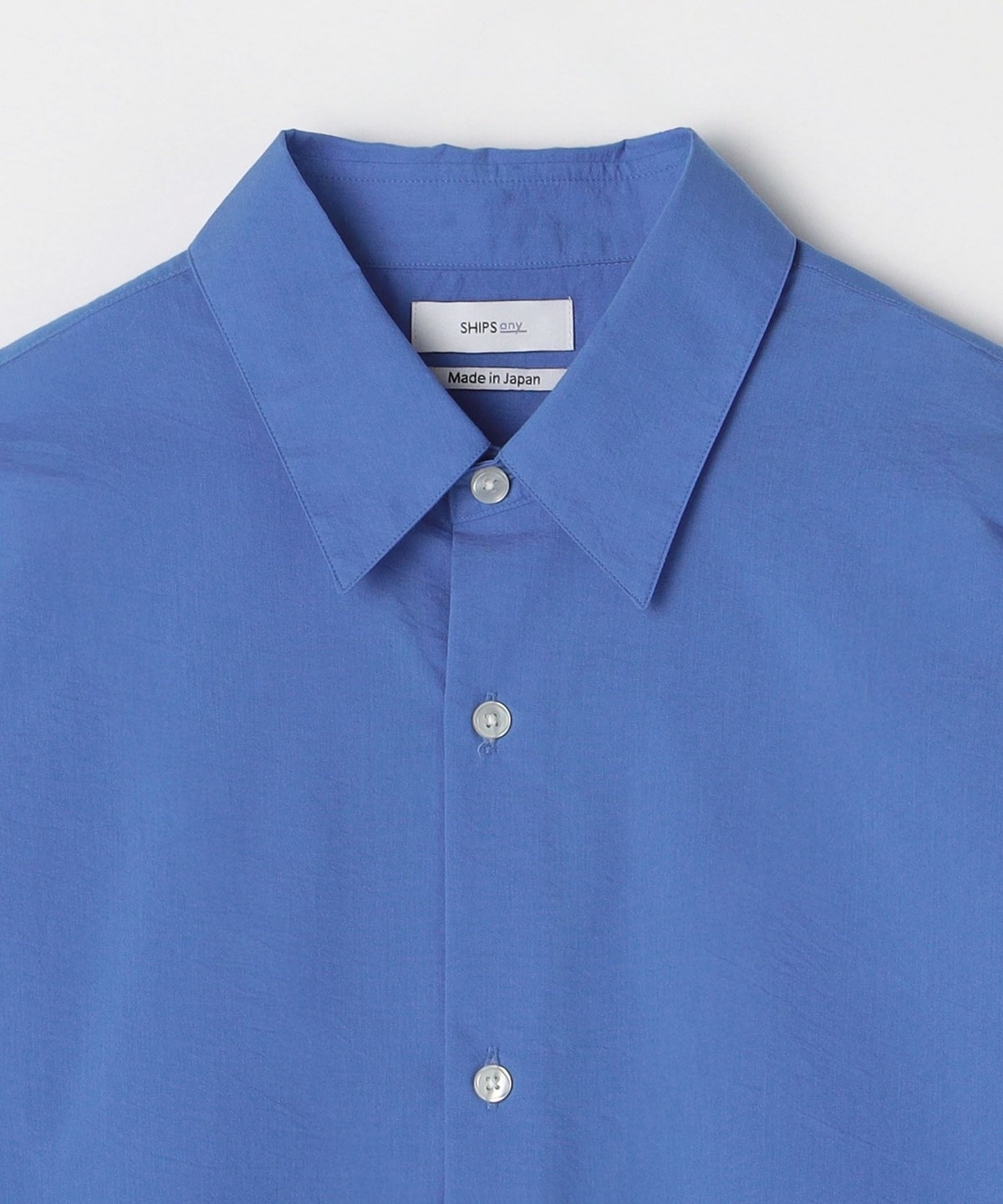 SHIPS any: JAPAN MADE ブルー ストライプ/ソリッド レギュラーカラー シャツ◇