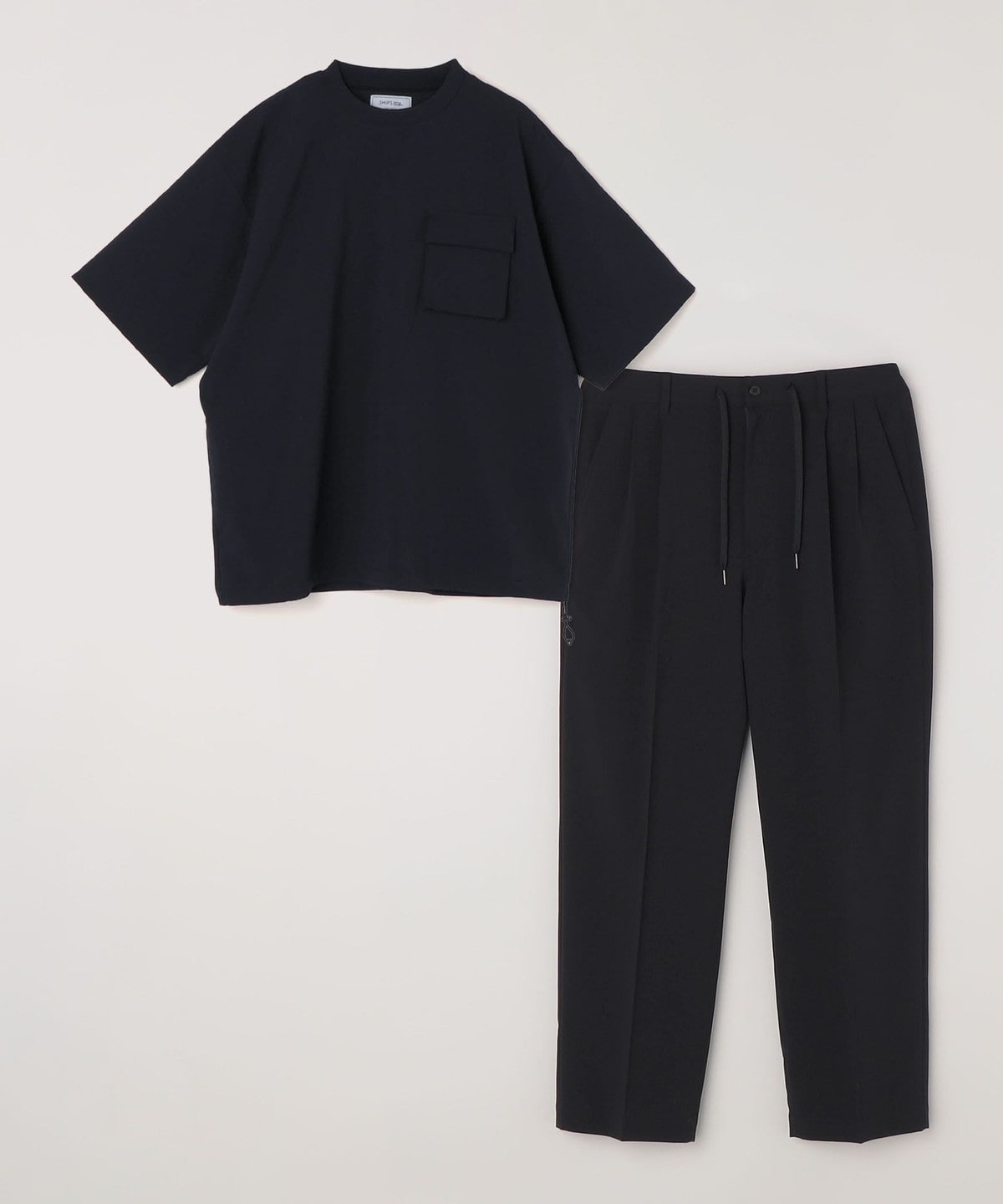 同素材のシャツやボトムスの展開もございますので、セットアップの着こなしもおすすめ。