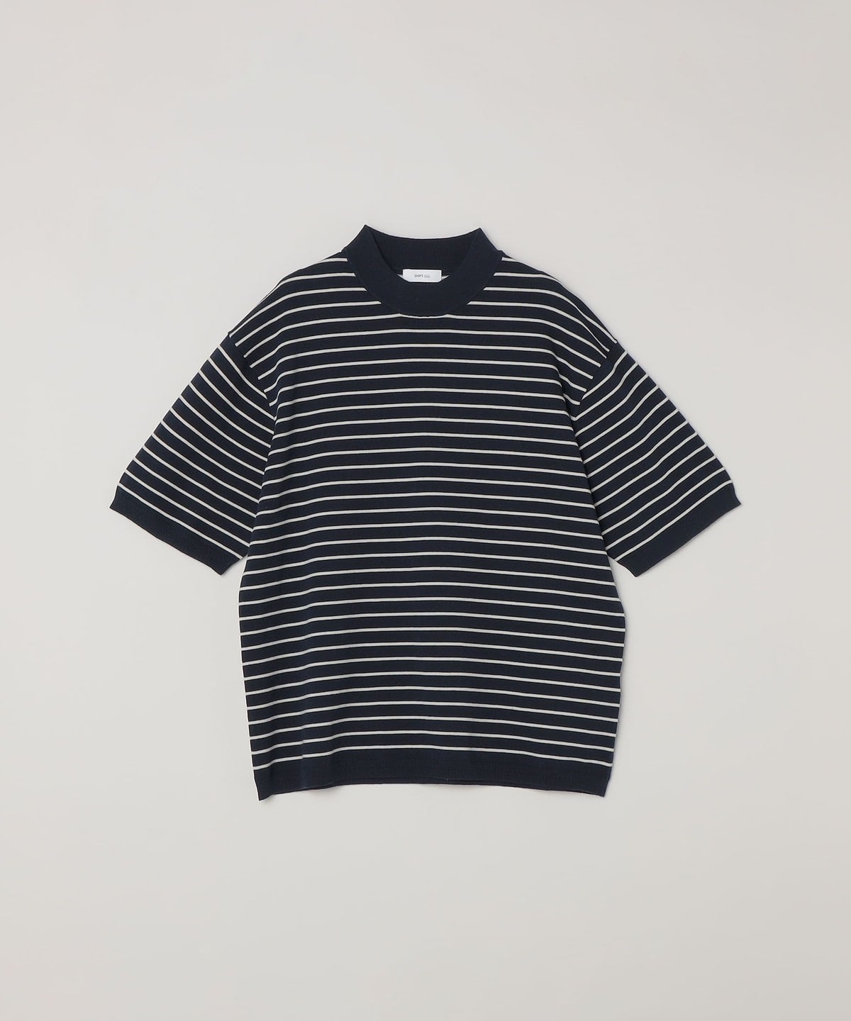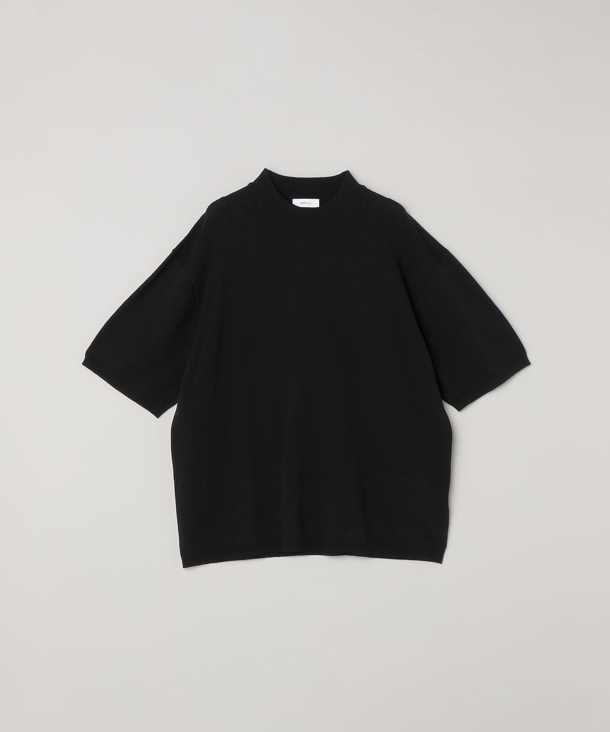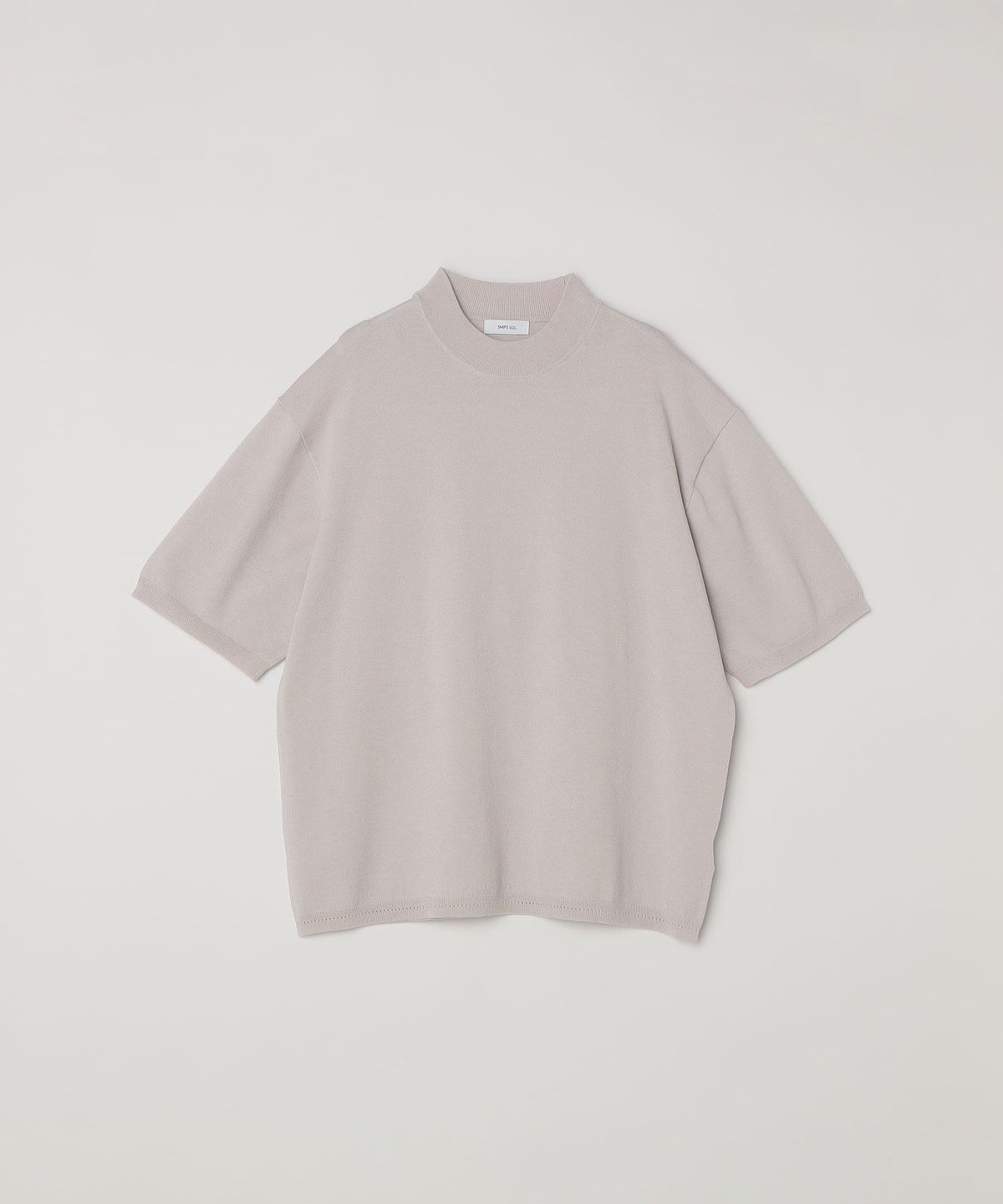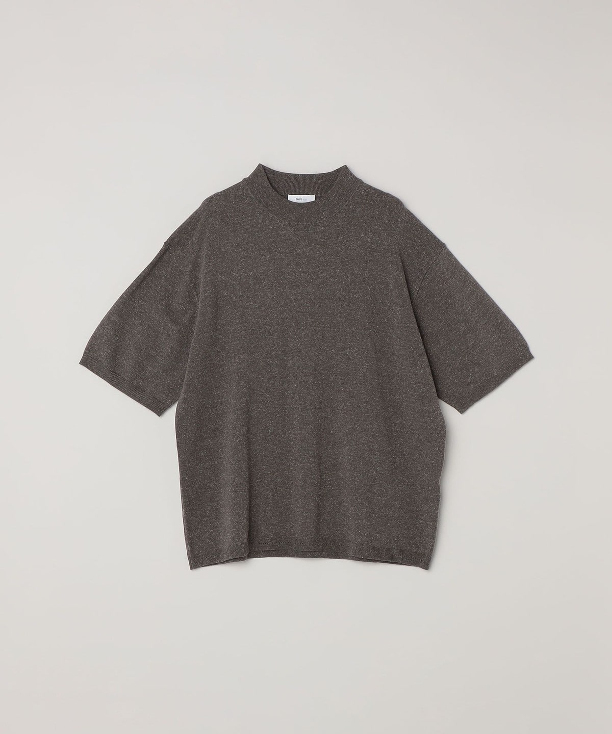 大人のリラックス感を醸し出すモックネック仕様のニットTシャツ。