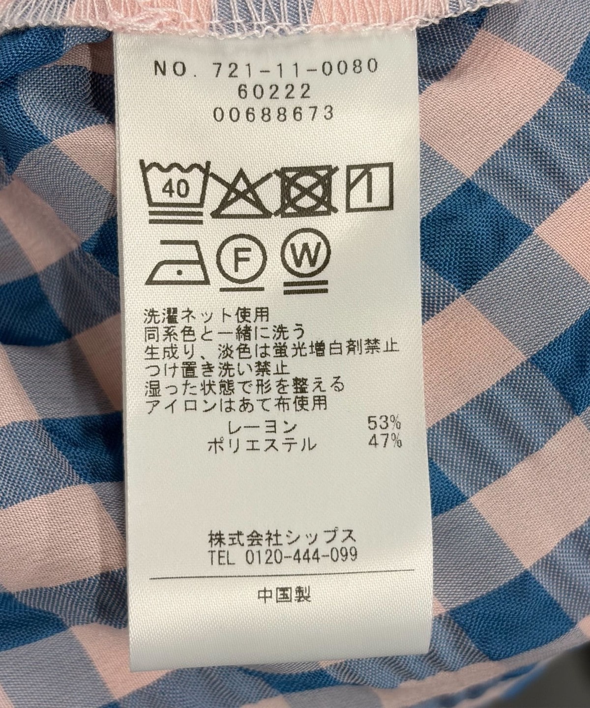 SHIPS any:〈洗濯機可能〉ギンガムチェック サッカー ドロスト シャツ ブラウス