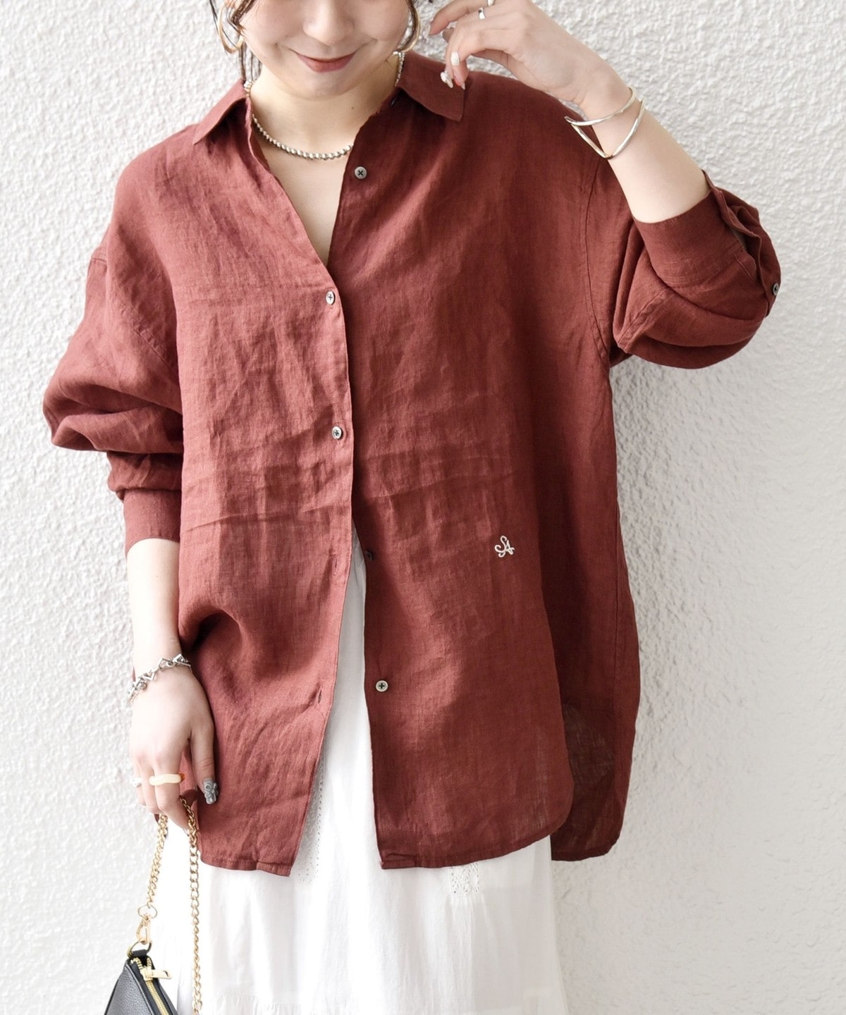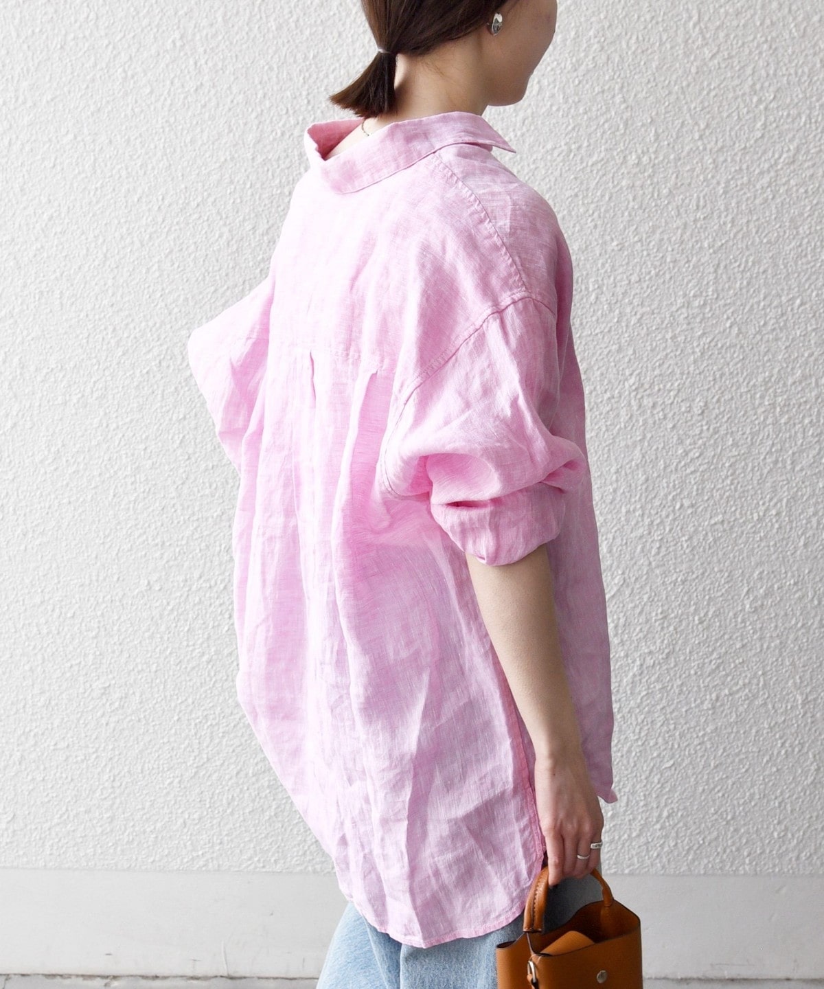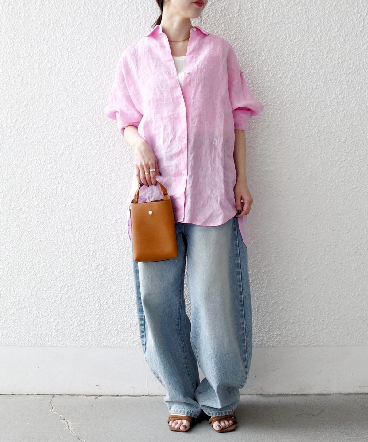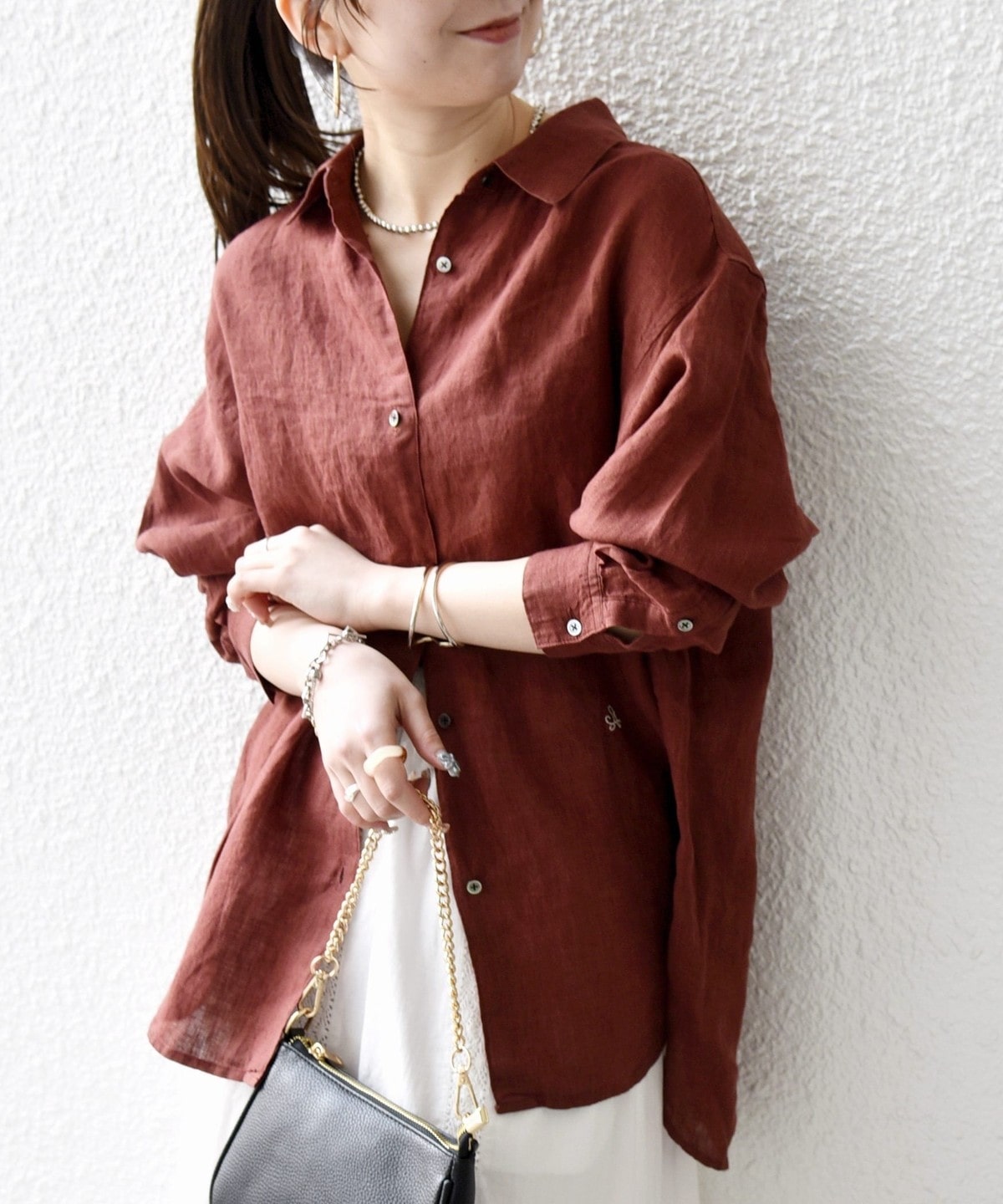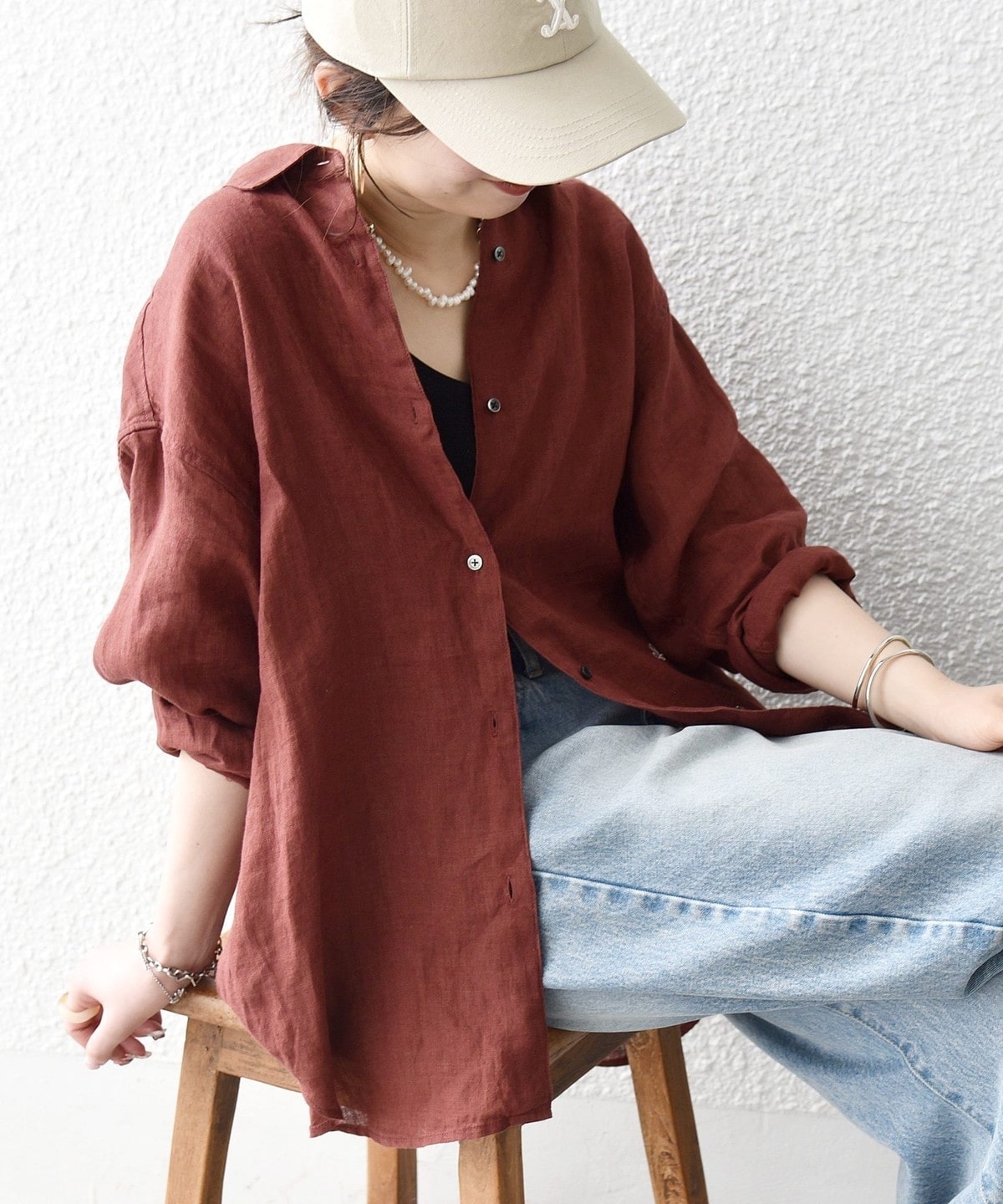 程良いリネンのシアー感があるので、キャミやタンクにさらっと重ねてヘルシーな着こなしがおすすめ。