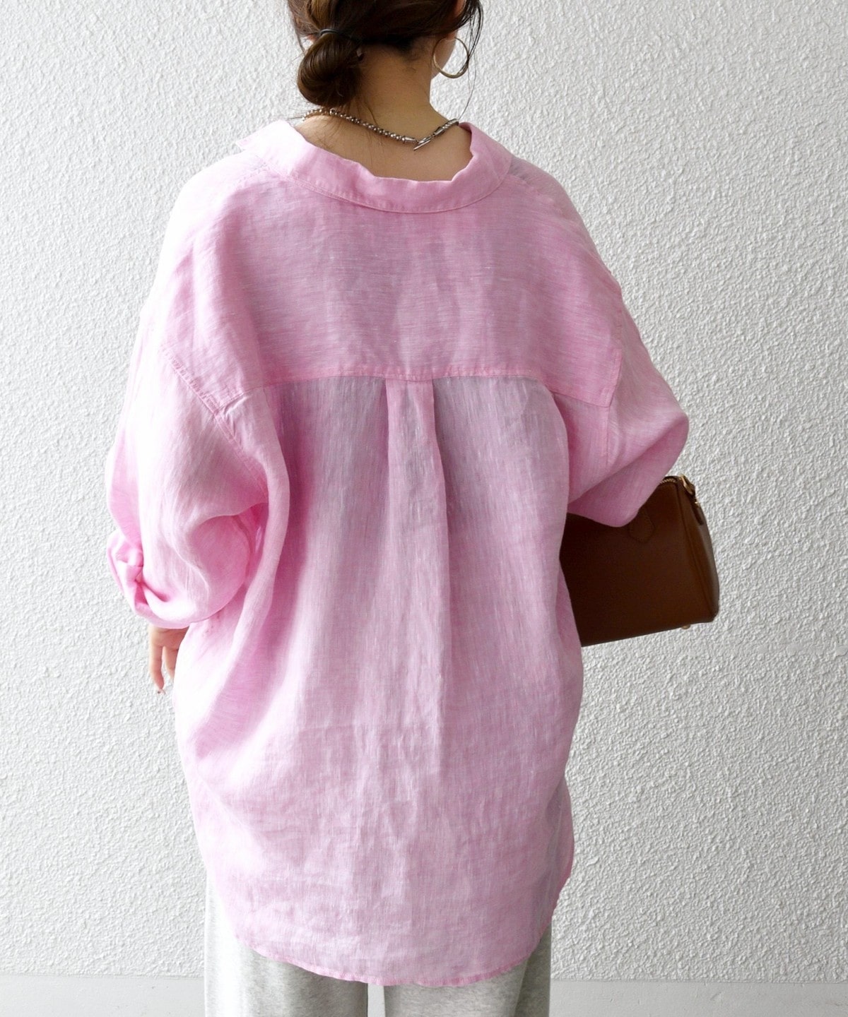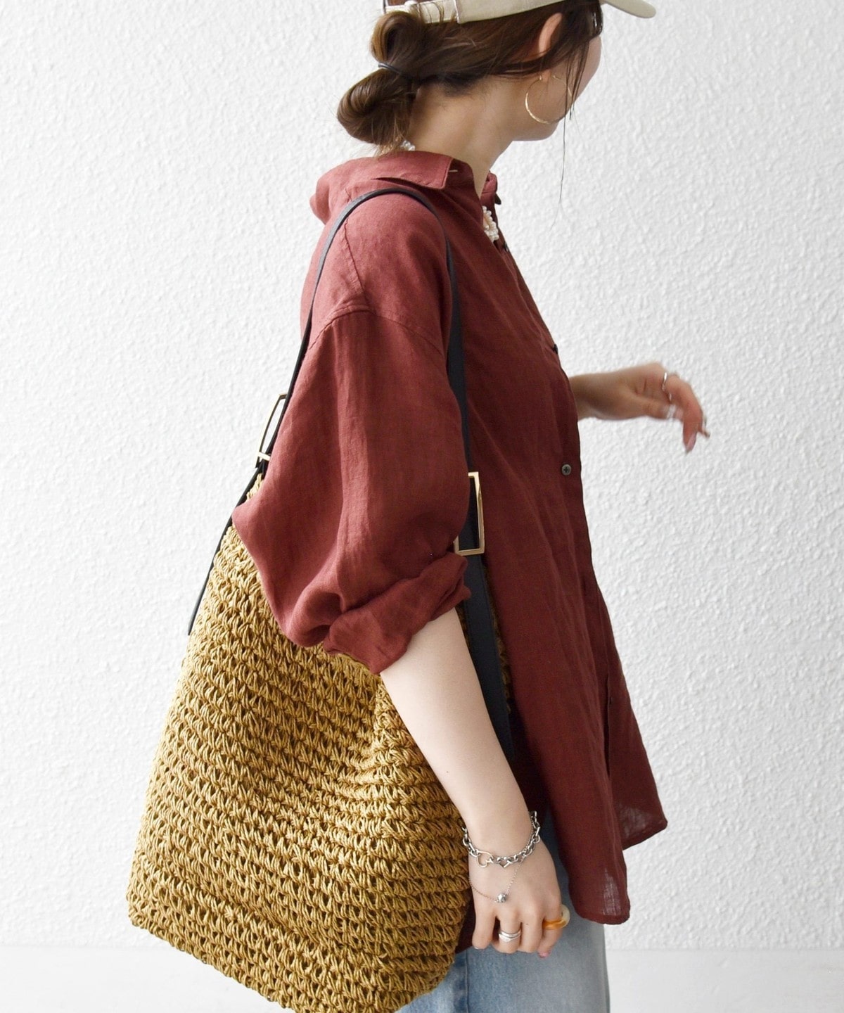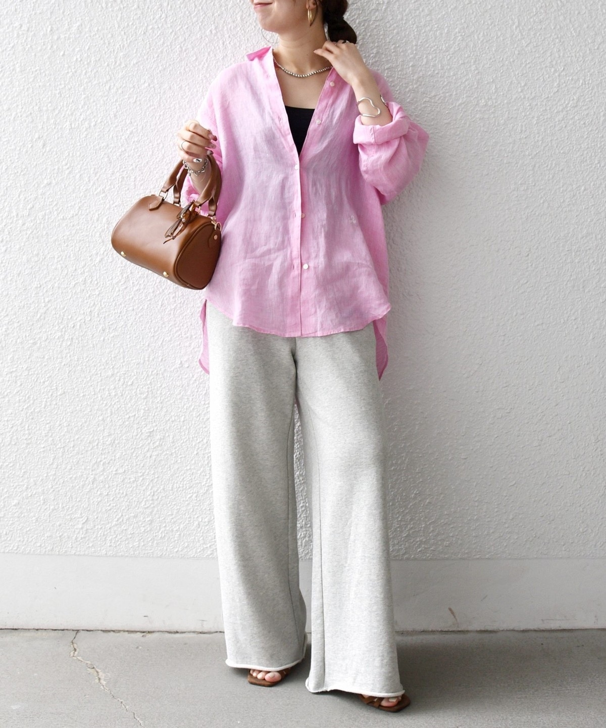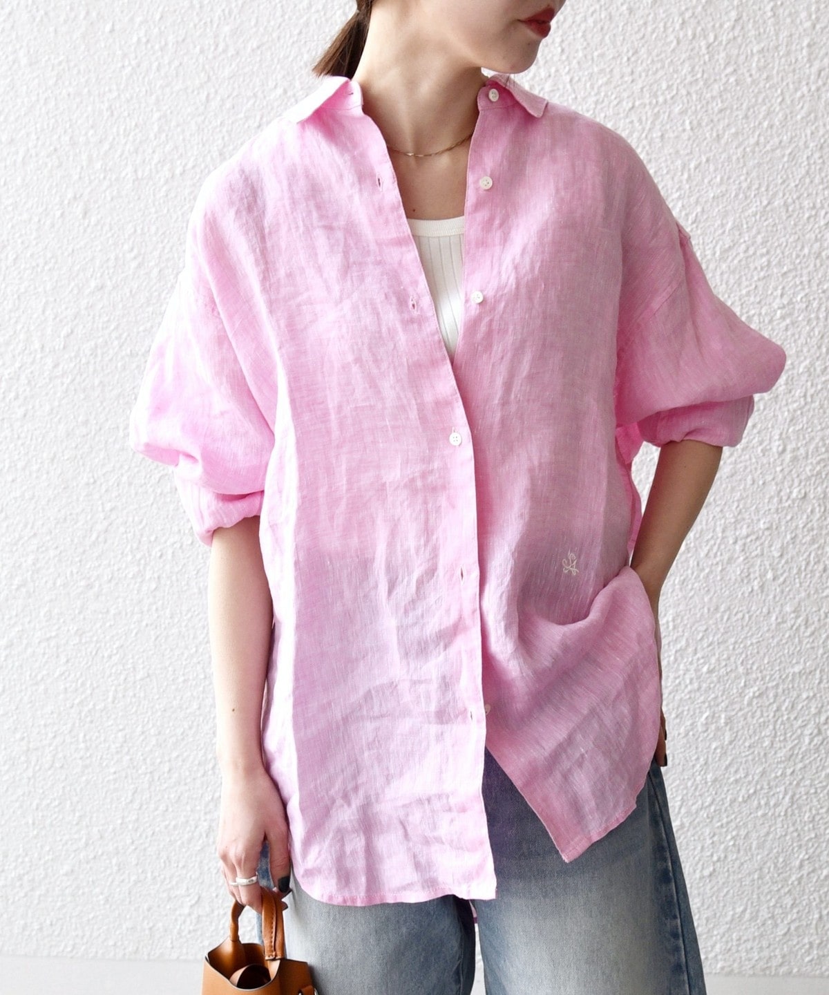 程良いリネンのシアー感があるので、キャミやタンクにさらっと重ねてヘルシーな着こなしがおすすめ。