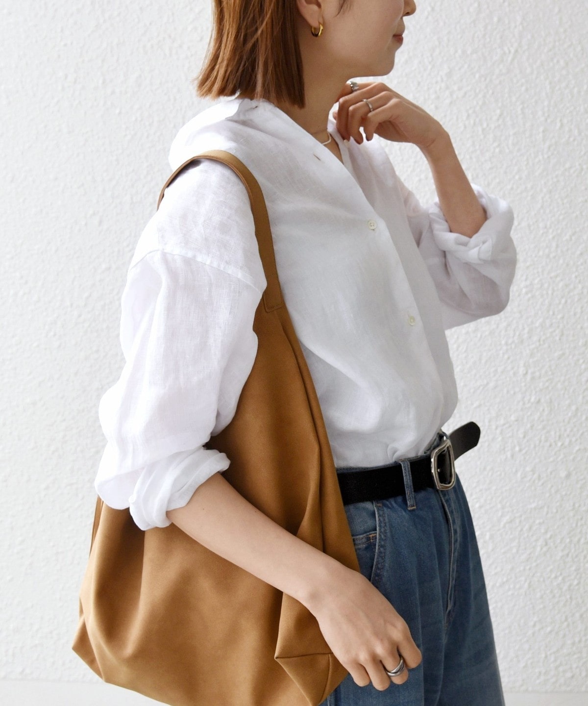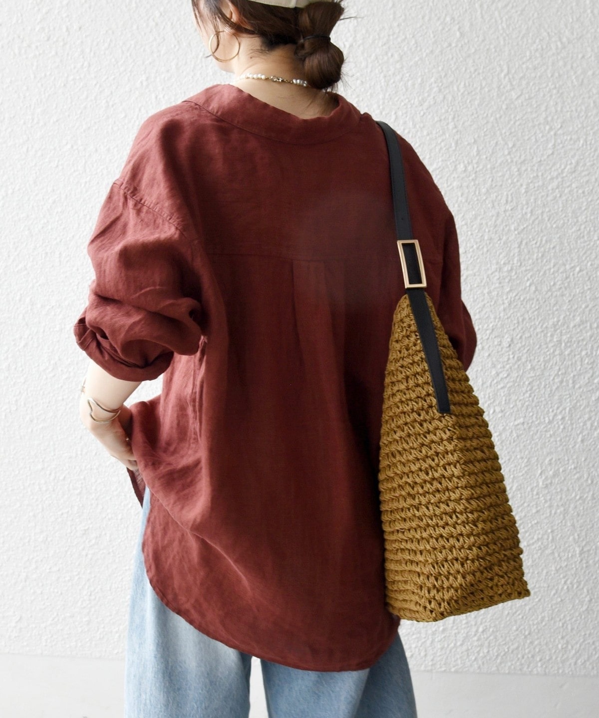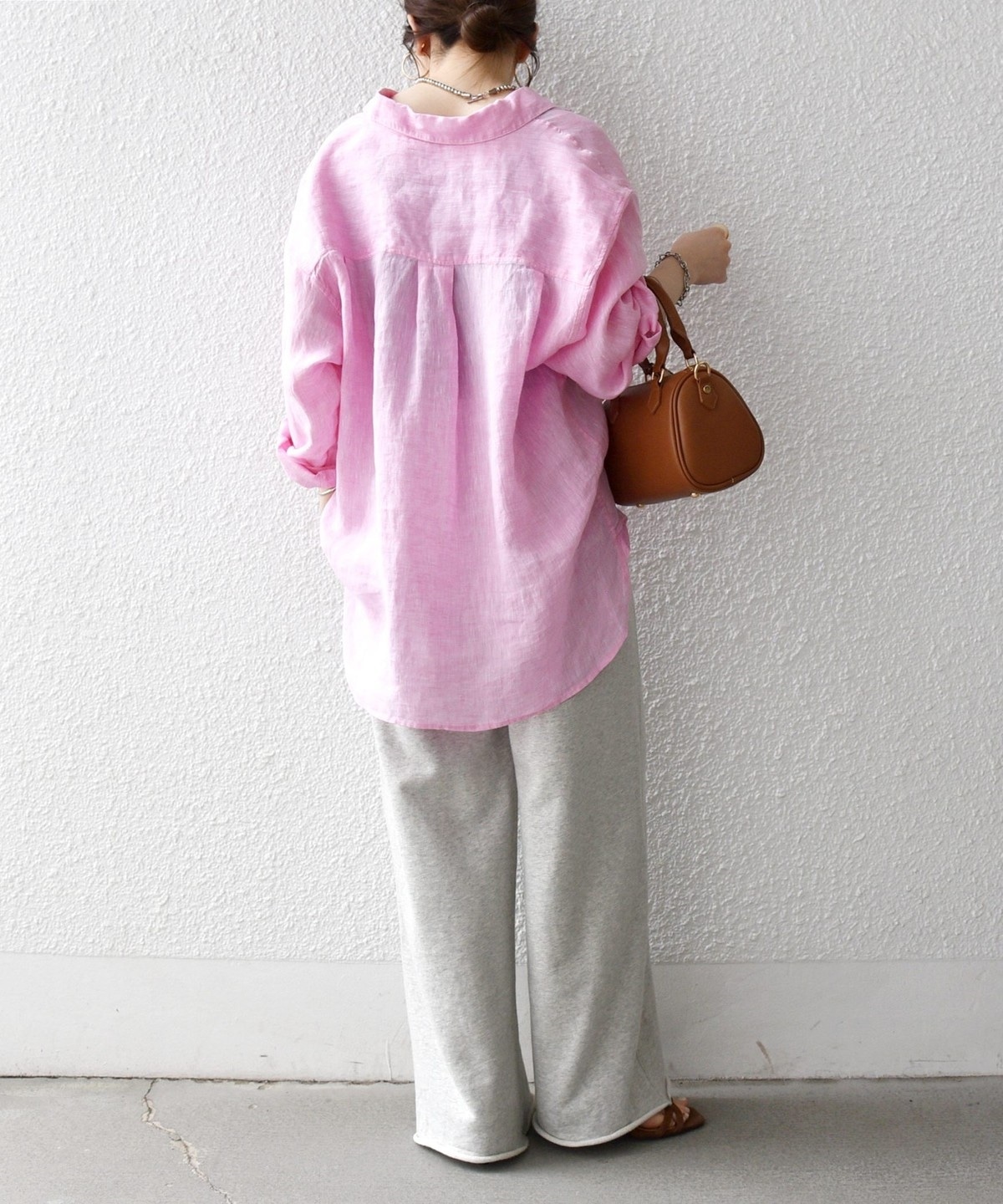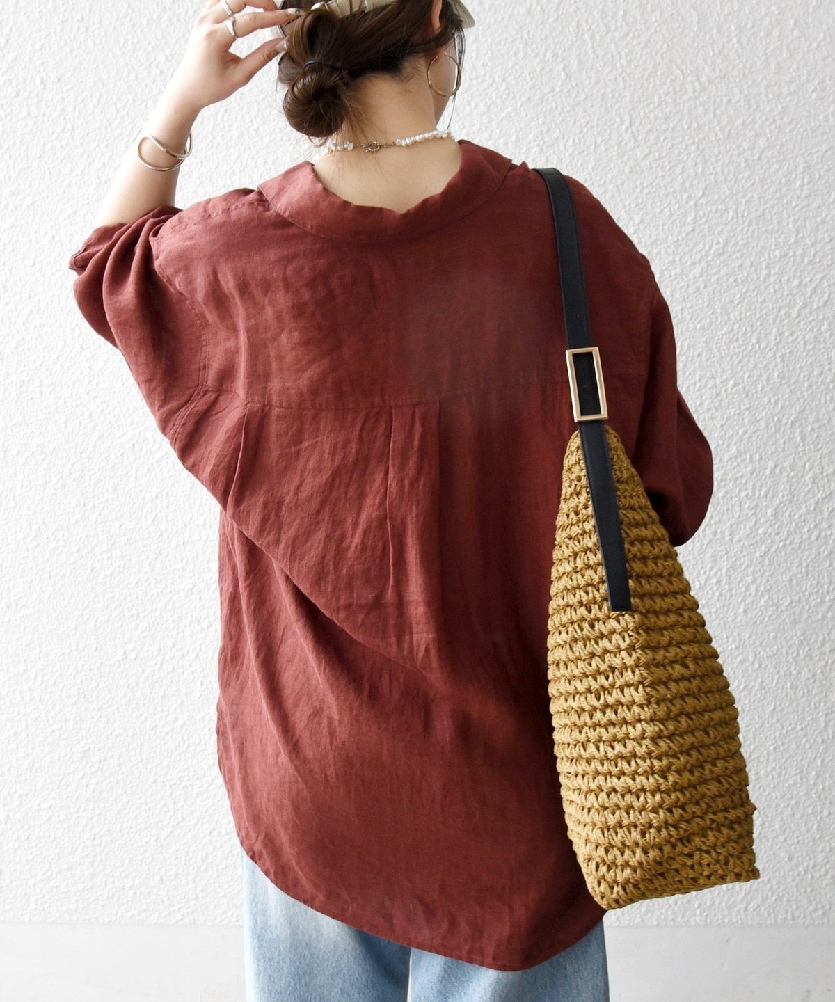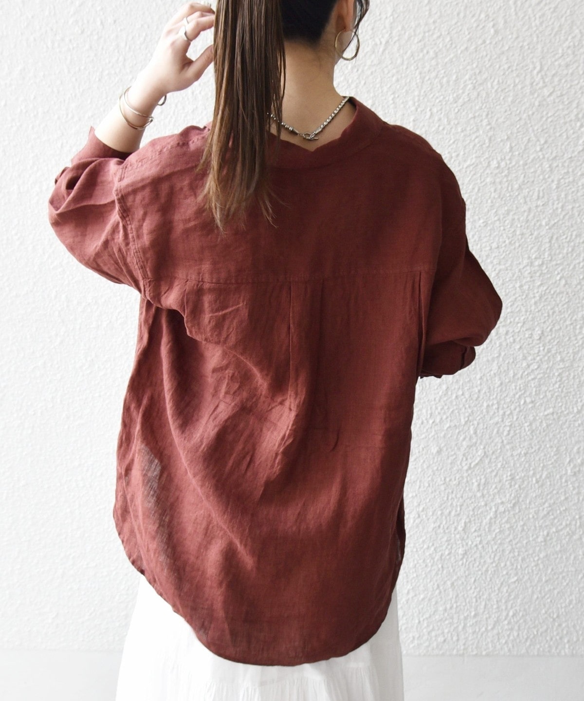 程良いリネンのシアー感があるので、キャミやタンクにさらっと重ねてヘルシーな着こなしがおすすめ。