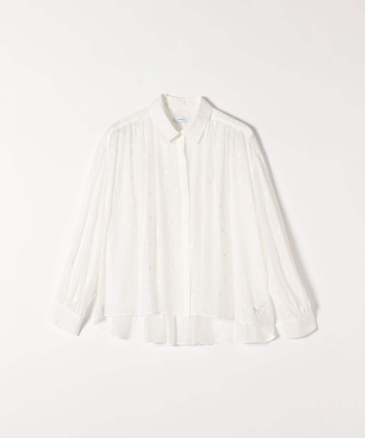 ドット柄の刺繍がポイントの生地を使用したシアーシャツ。