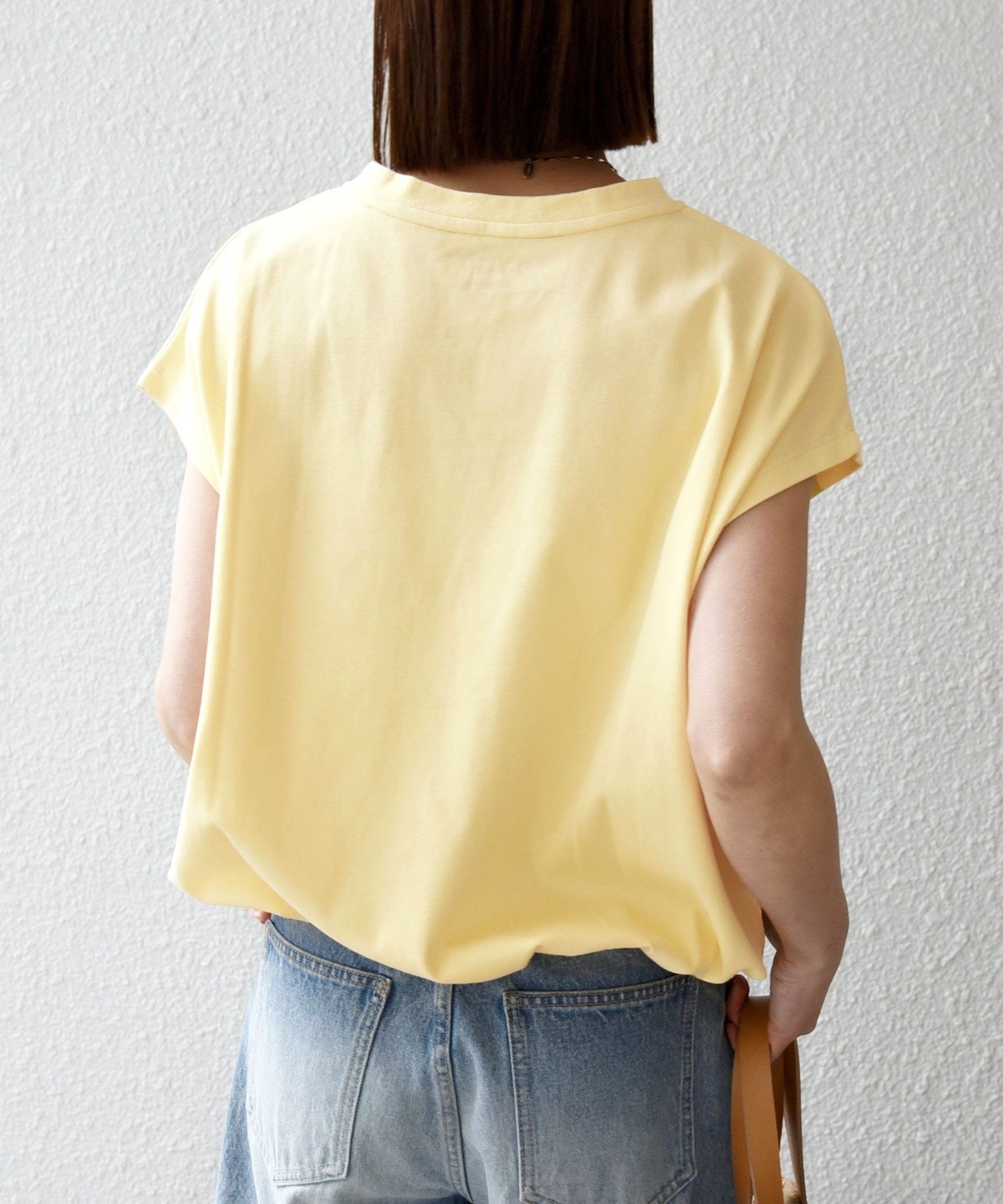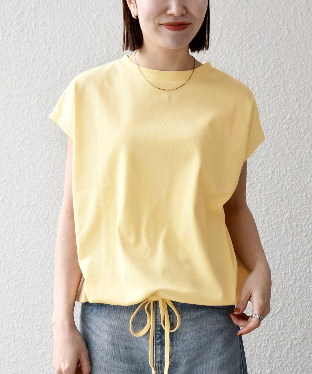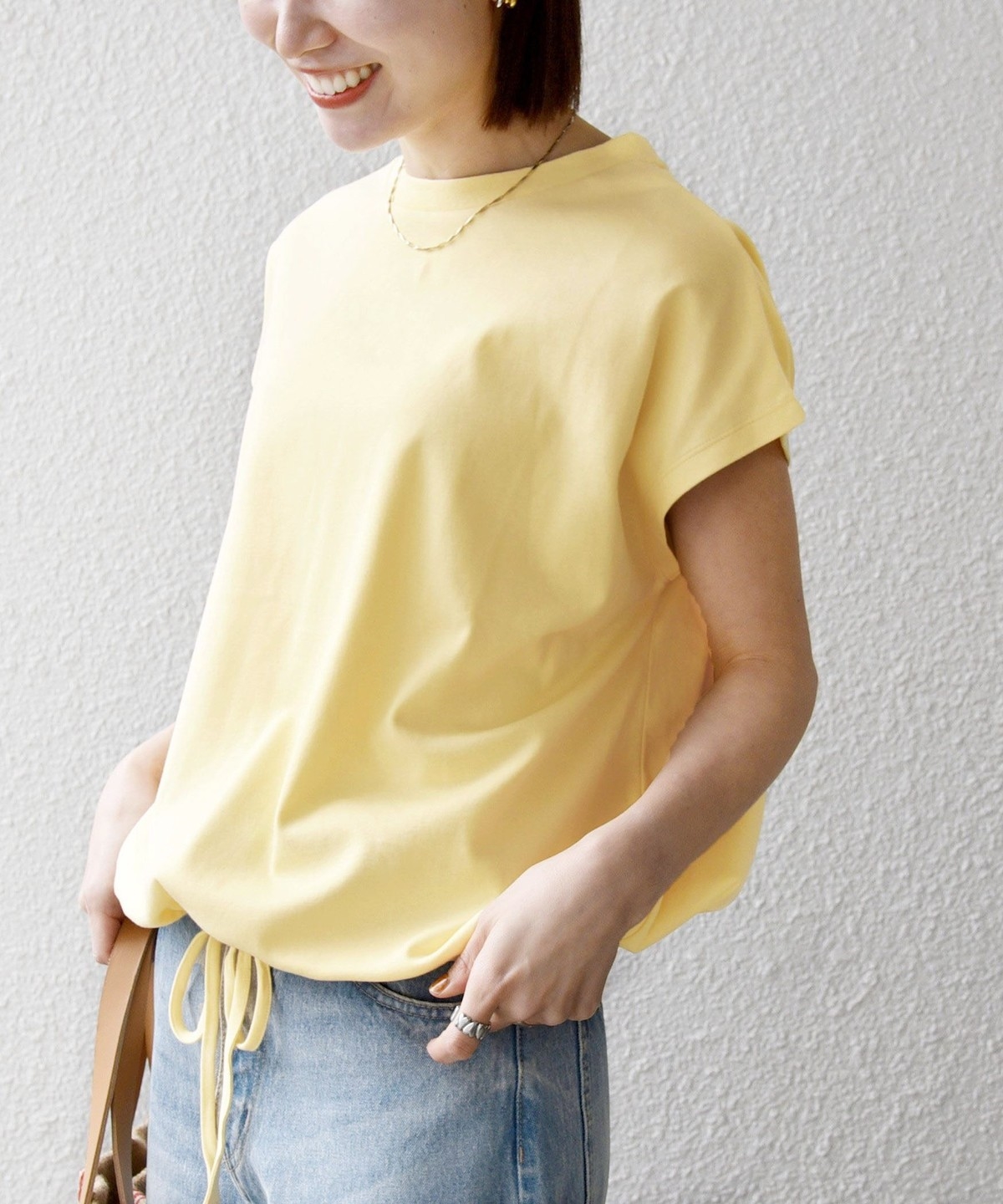 裾のドロストがポイントのフレンチスリーブTシャツ。