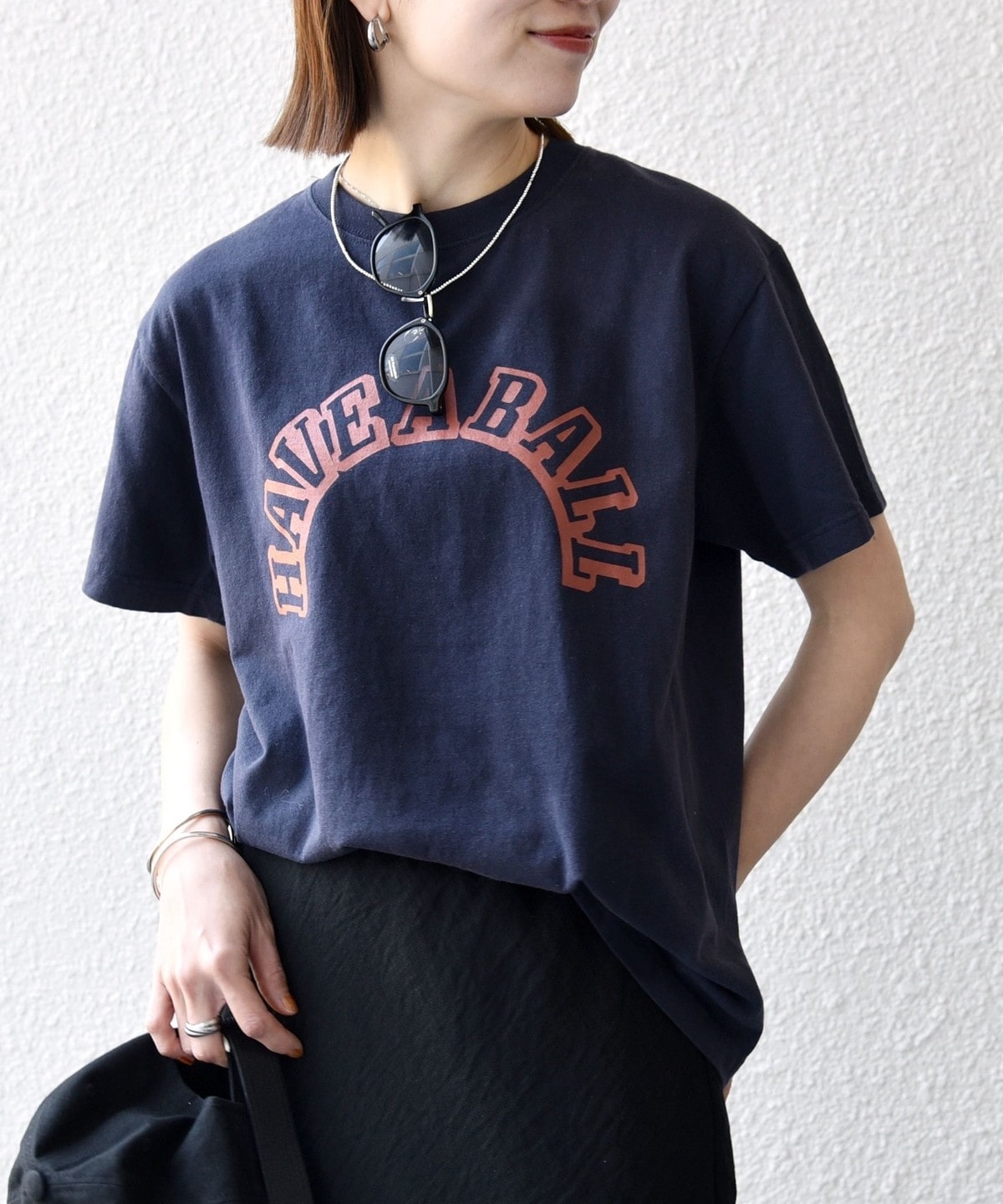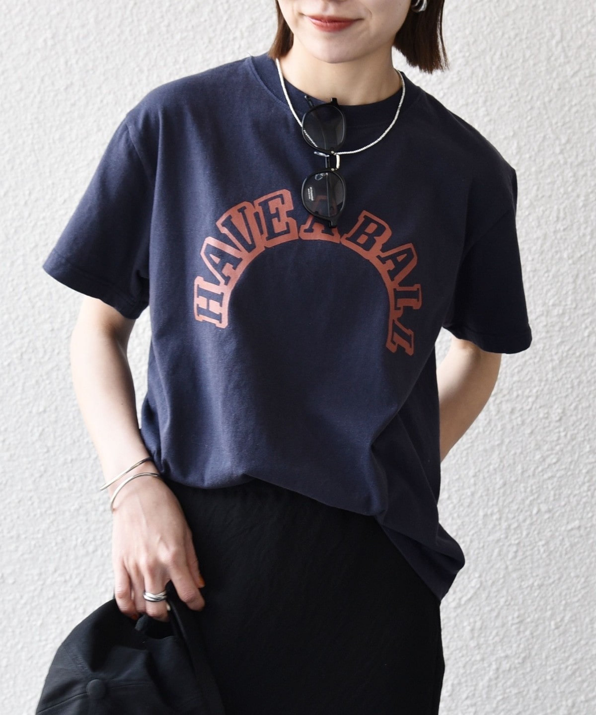 ジャケットやスカートとも好相性で大人っぽく着れるロゴTEEです。