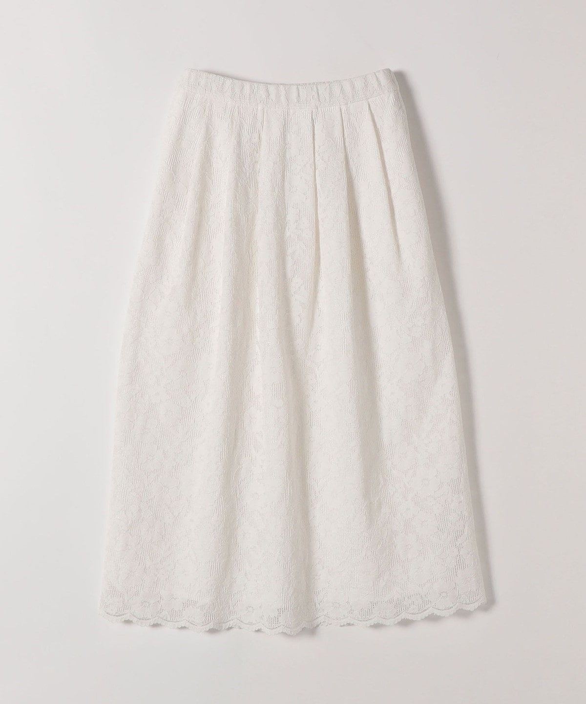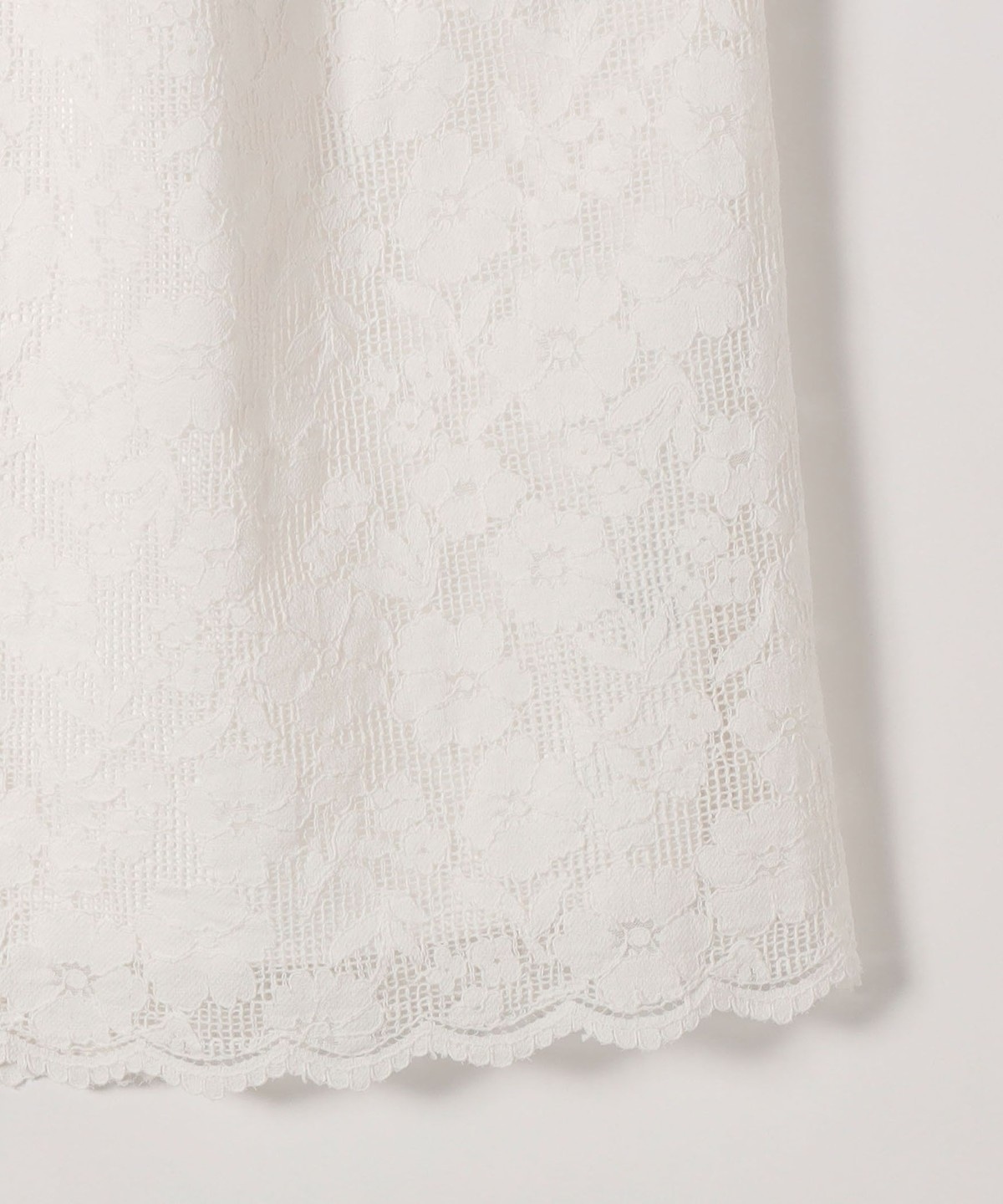 フラワーレースを主役に、シンプルなトップスと合わせたスタイリングがおすすめ。