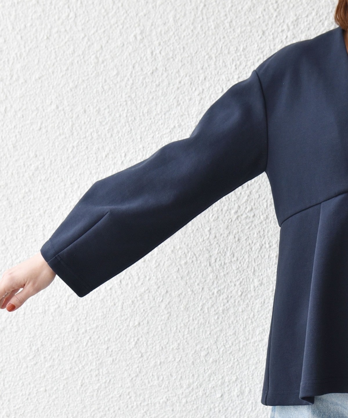 《予約》SHIPS any:〈手洗い可能〉ダンボール ペプラム Vネック ジャケット