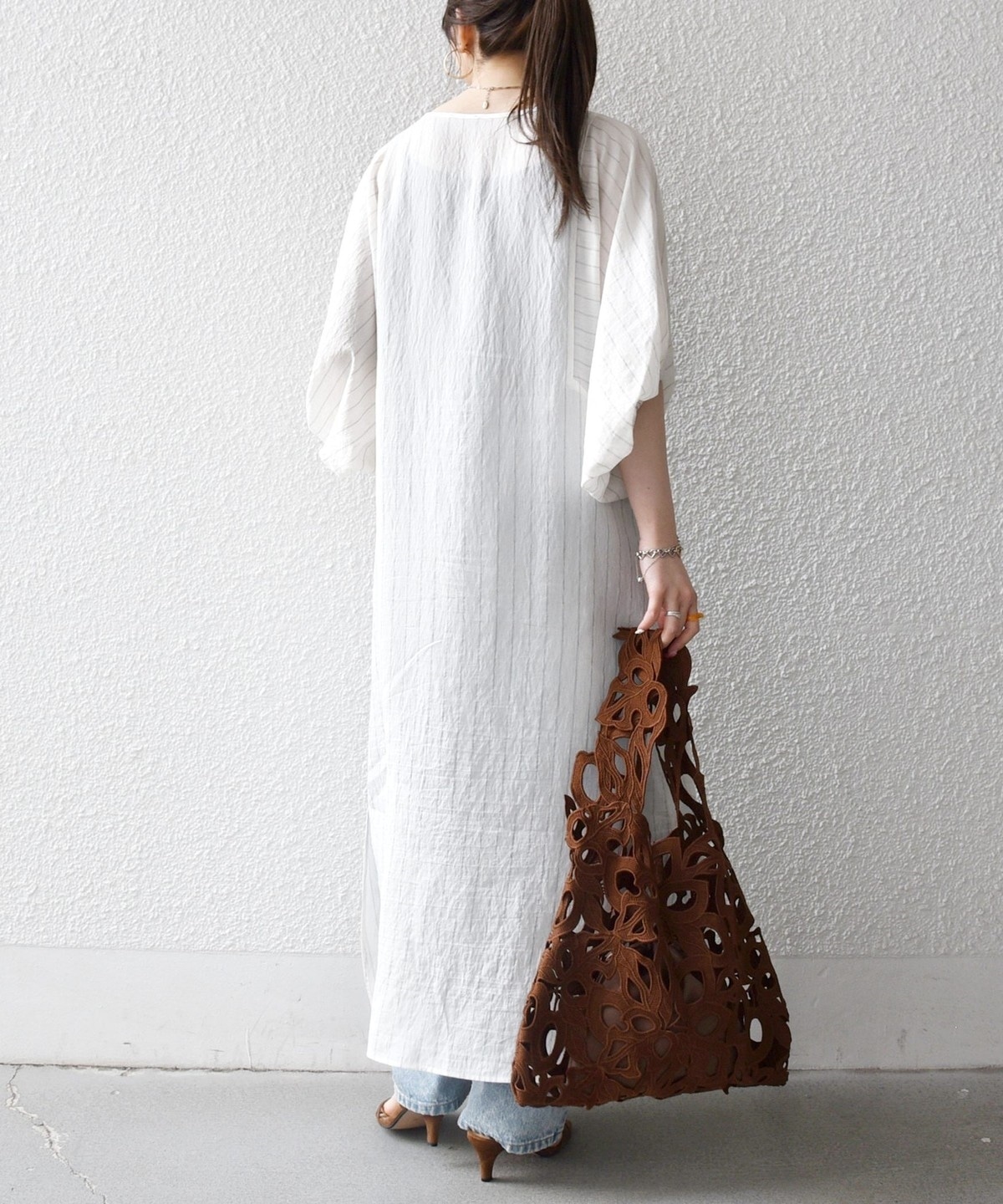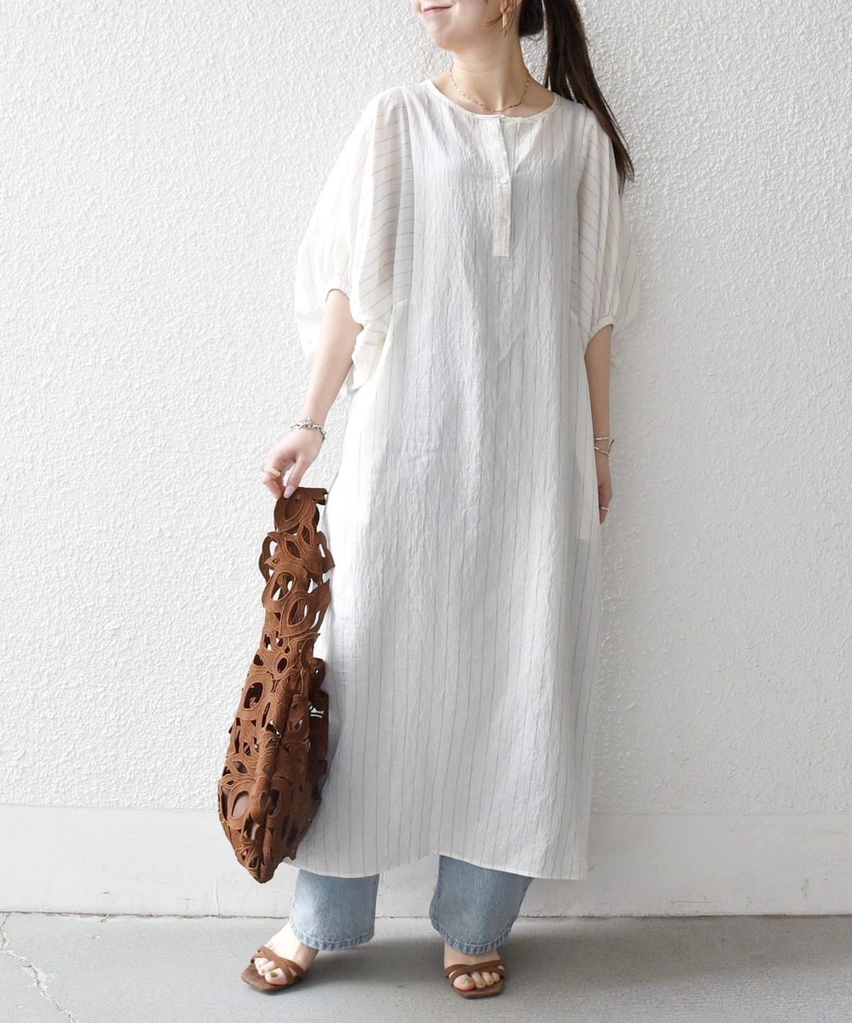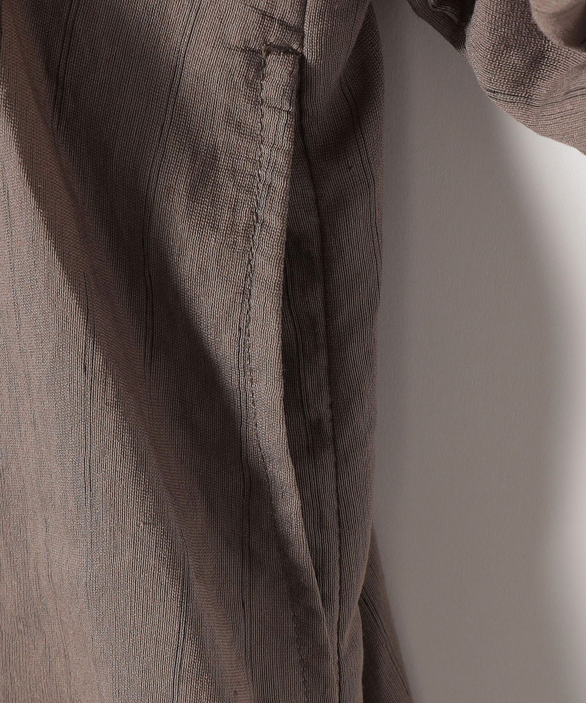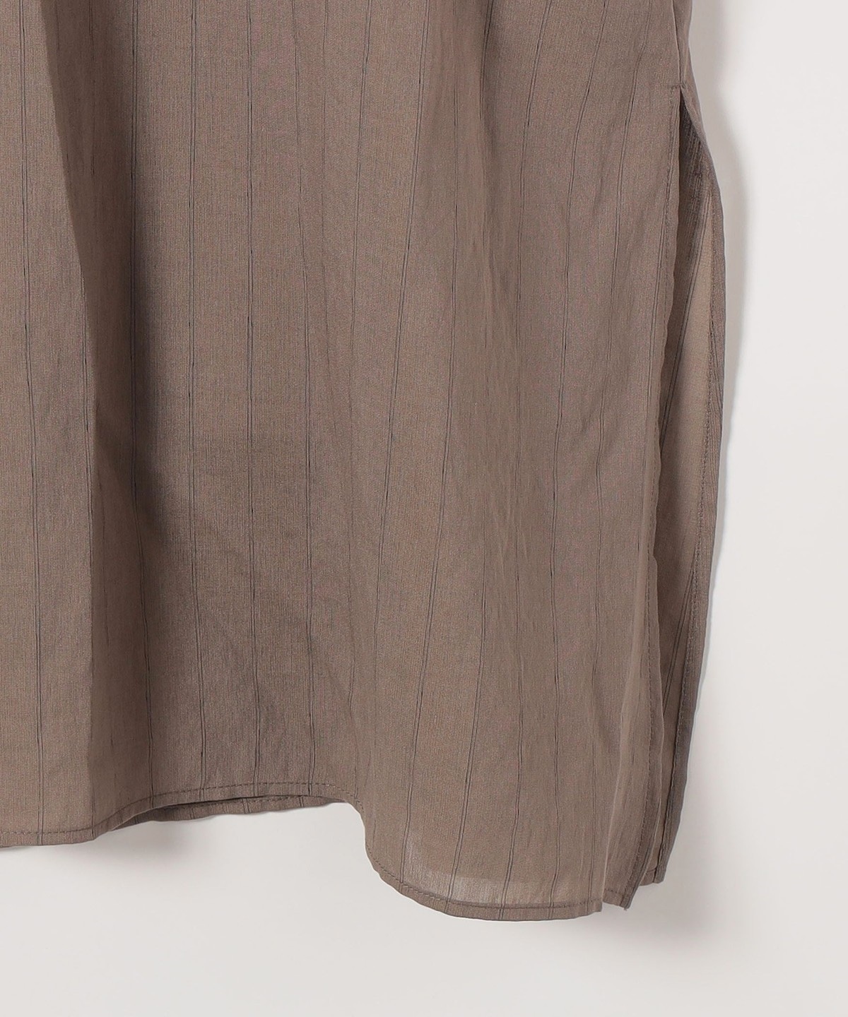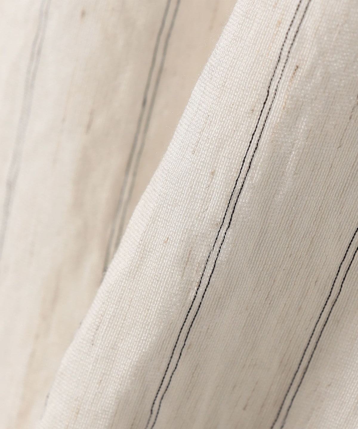 リネンミックスの、ピンストライプを施したシアー素材を使用。