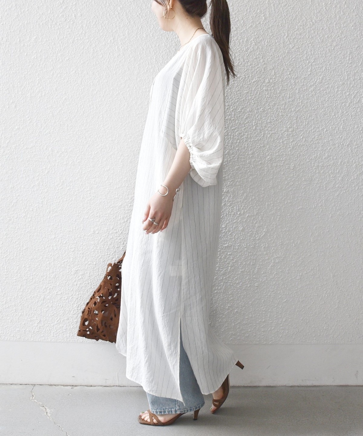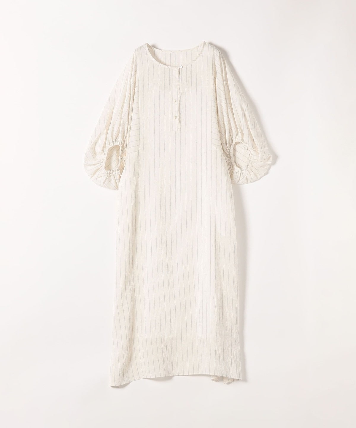 《予約》SHIPS any:〈洗濯機可能〉リネン ミックス ボリュームスリーブ ストライプ ワンピース