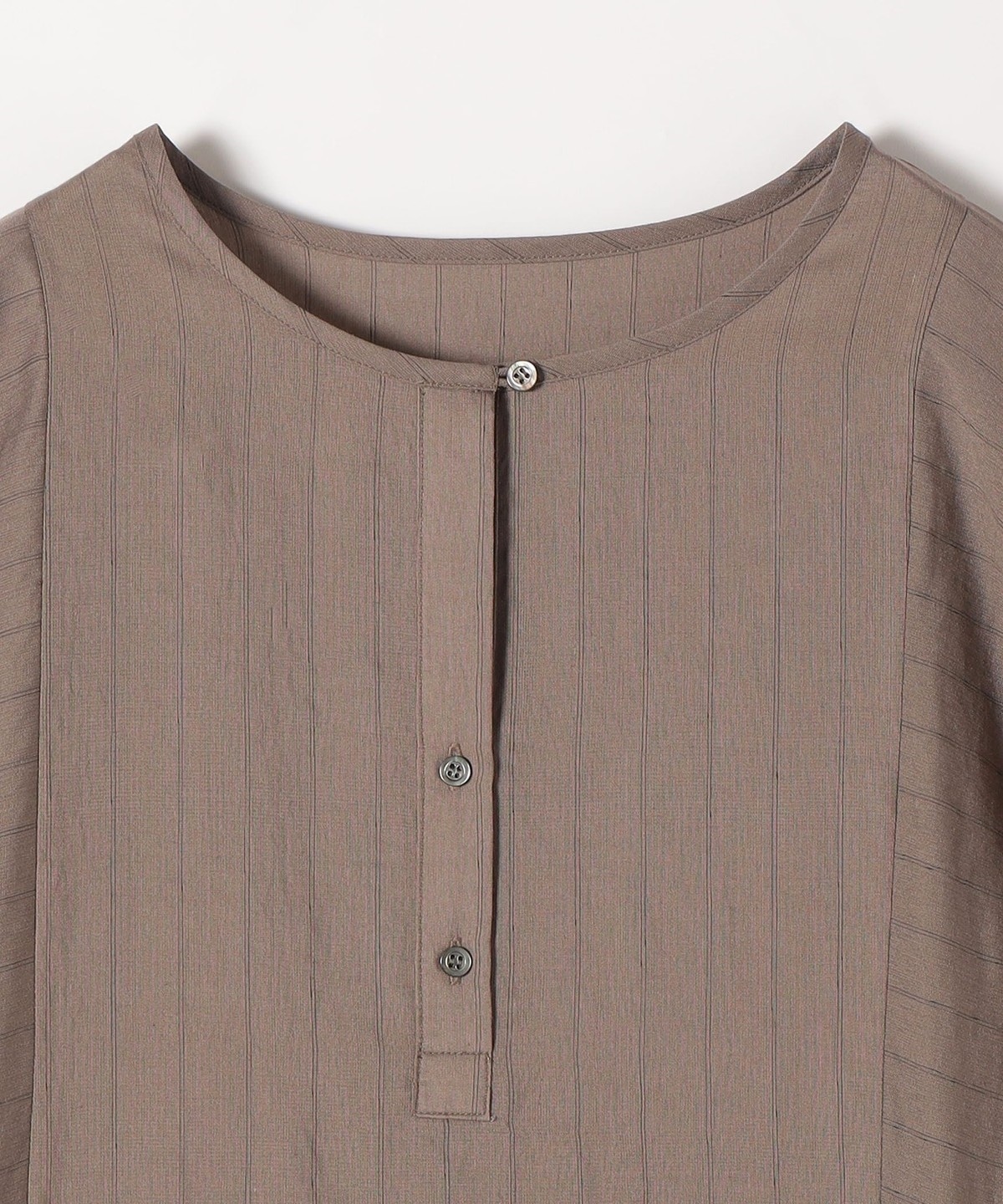 ヘンリーネックのボタンを開けることで、顔まわりすっきりした印象に。