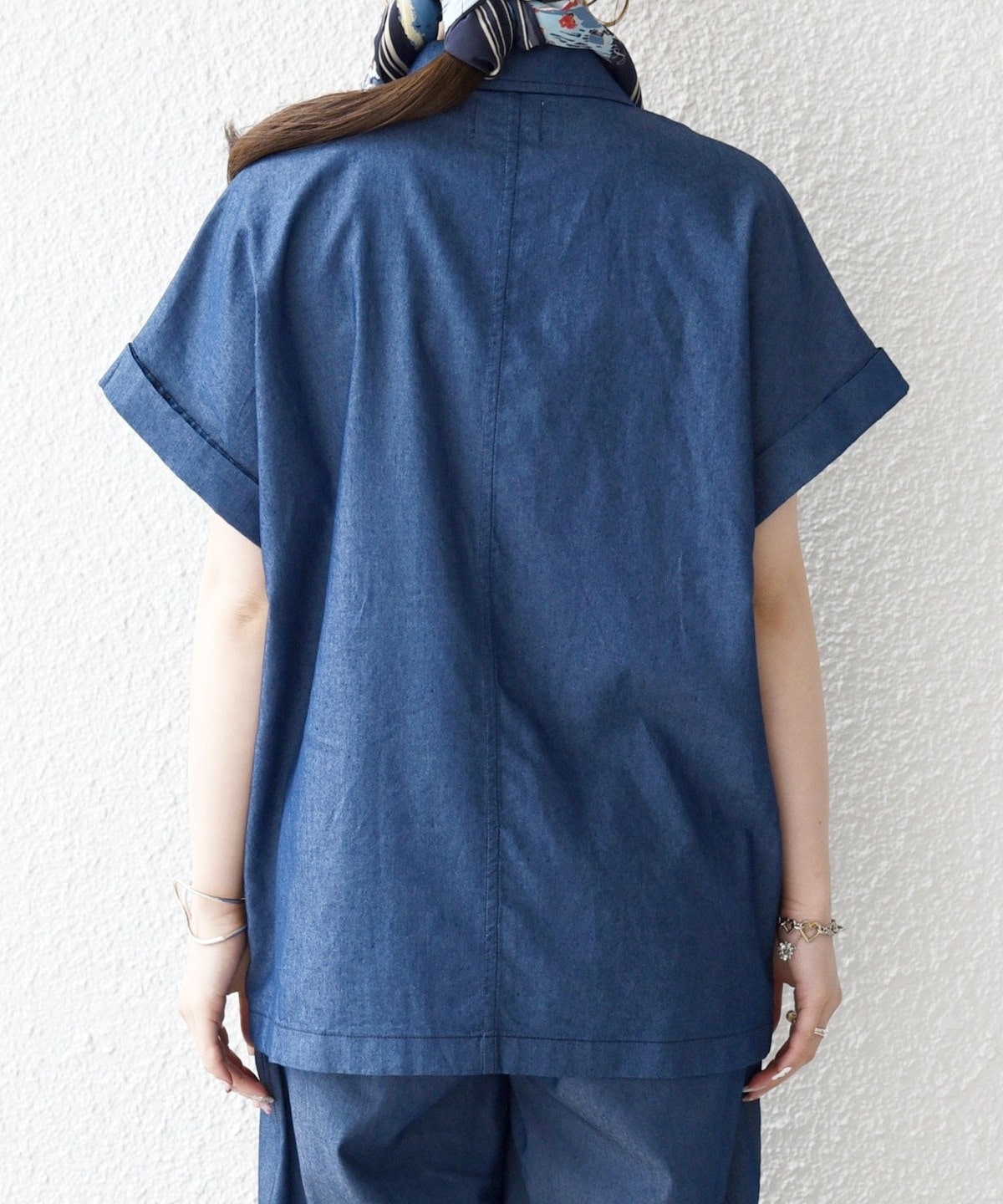 ヒップが隠れる着丈と、リラックス感のあるボックスシルエットでさっと羽織るだけでバランスよく決まります。