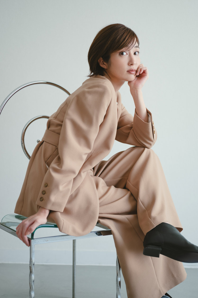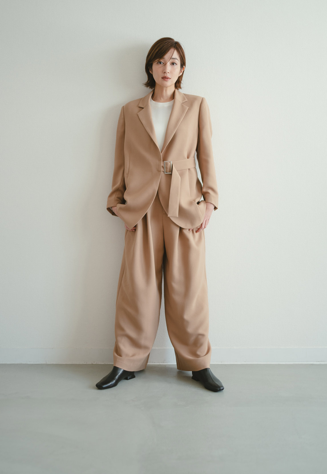 セットアップは、お助けアイテム。ファッションの仕事をする前はコーディネートに悩んでワンピースばかり着ていましたが、セットアップというものに出会ってからは…気がついたら買っちゃってますね(笑)。着るだけでおしゃれに見えるし、中に着るものを変えると雰囲気も変わるし、本当に便利です。