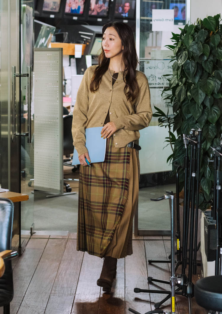 あたたかさを生むのは、厚手の服だけではありません。薄手のニットやシャツを重ね、空気の層を作ることで、薄手に見えても保温性を発揮します。アイボリーやベージュなど、柔らかいトーンを重ねれば、軽やかで、やさしい印象に仕上がります。動きやすく、それでいて凛とした、働く女性に似合う冬のレイヤードです。