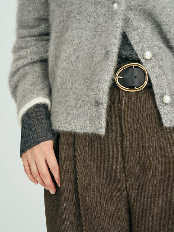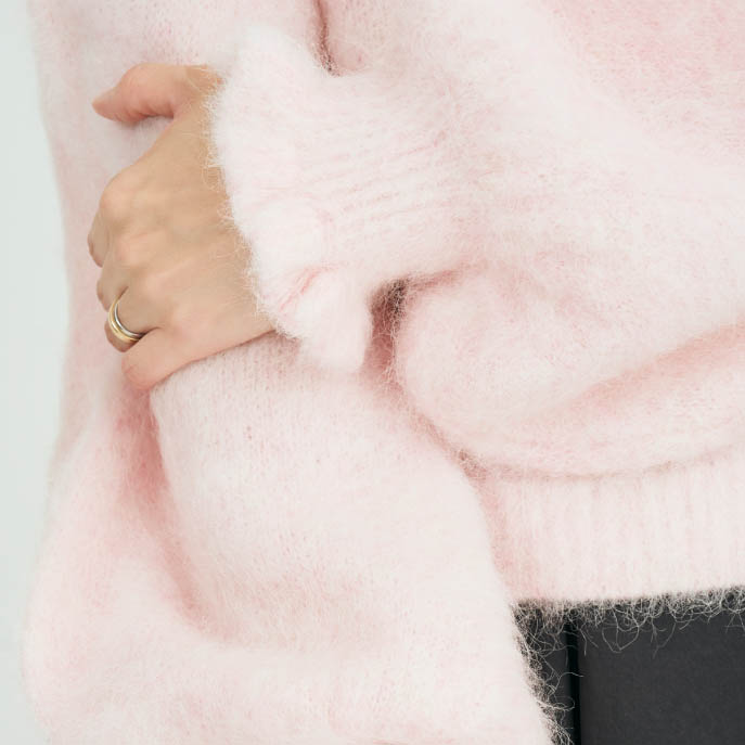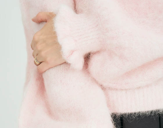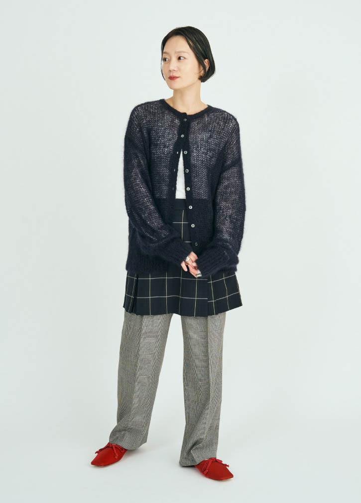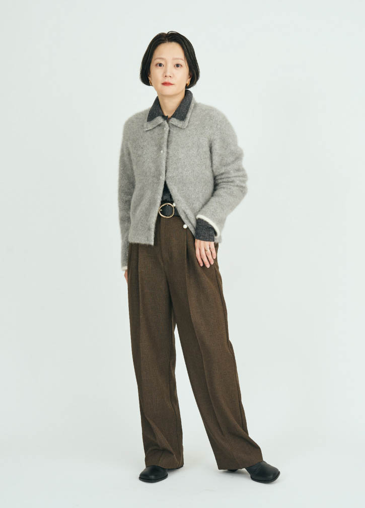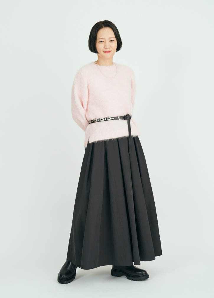 ニットは、質感やシルエットの余白で自分らしさを表現できるアイテム。ゆるさがありながらも、着方次第で輪郭を美しく見せてくれる。だからこそ、ウエスト位置や縦のライン、足元とのバランスまで計算して、柔らかさの中に芯を感じるスタイルを意識しています。